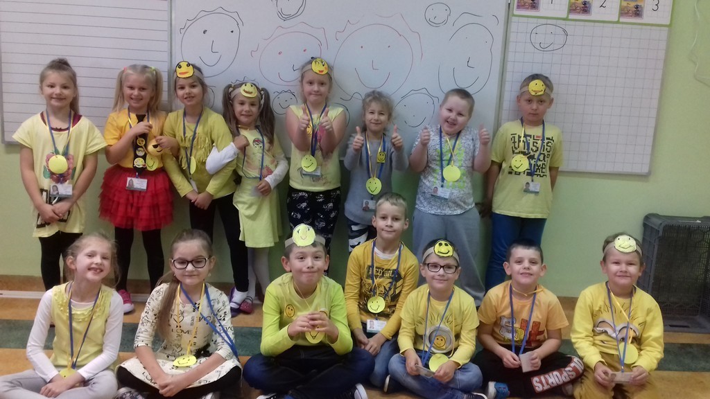6 października zaopatrzeni w charakterystyczne żółte znaczki, lizaki, cytrynę i czekoladę z wielkim entuzjazmem, zaangażowaniem i oczywiście uśmiechem na twarzy „rozdawali” uśmiechy. Całości dopełniła też cześć dekoracji przygotowana podczas zajęć świetlicowych. Cieszy fakt, że starsi uczniowie docenili swoich młodszych kolegów i koleżanki. Mamy nadzieję, że przygotowana przez nas akcja przyczyniła się do tego, że wszyscy tego dnia chociaż raz się uśmiechnęli!
