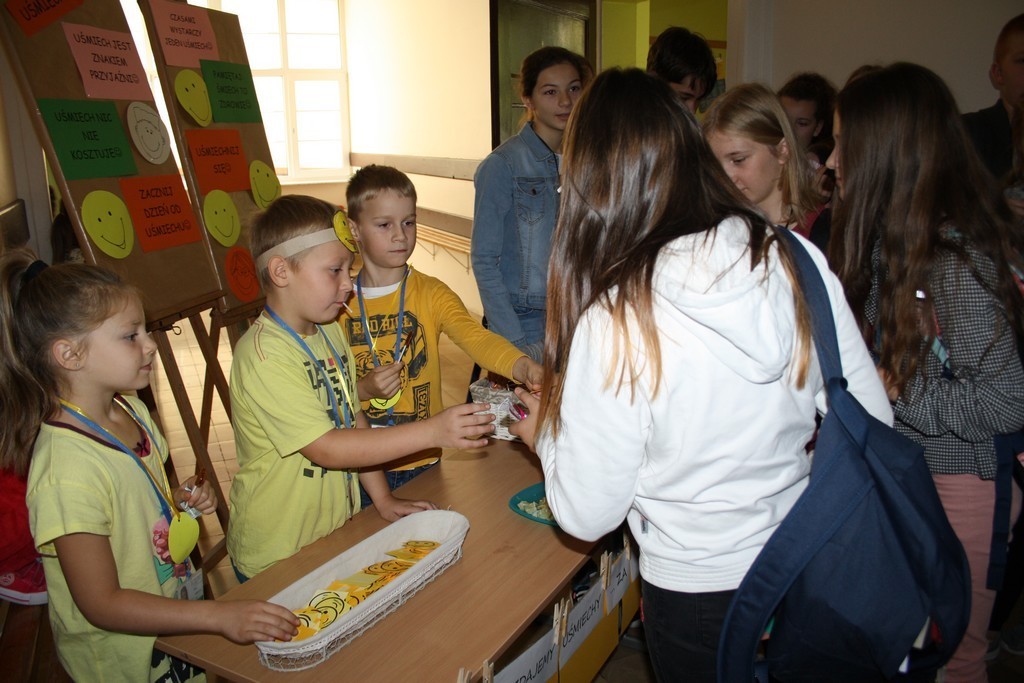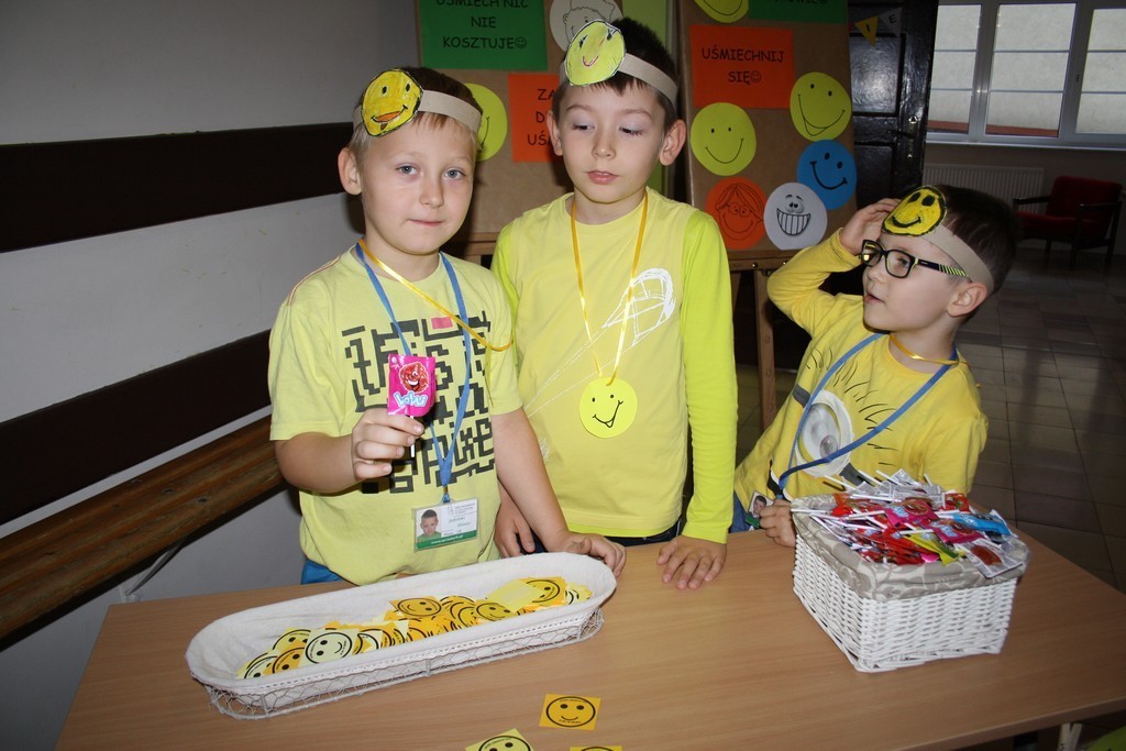 Światowy Dzień Uśmiechu obchodzony jest corocznie w pierwszy piątek października, dlatego też w tym dniu najmłodsi uczniowie naszej szkoły obdarowywali wszystkich chętnych uśmiechem.