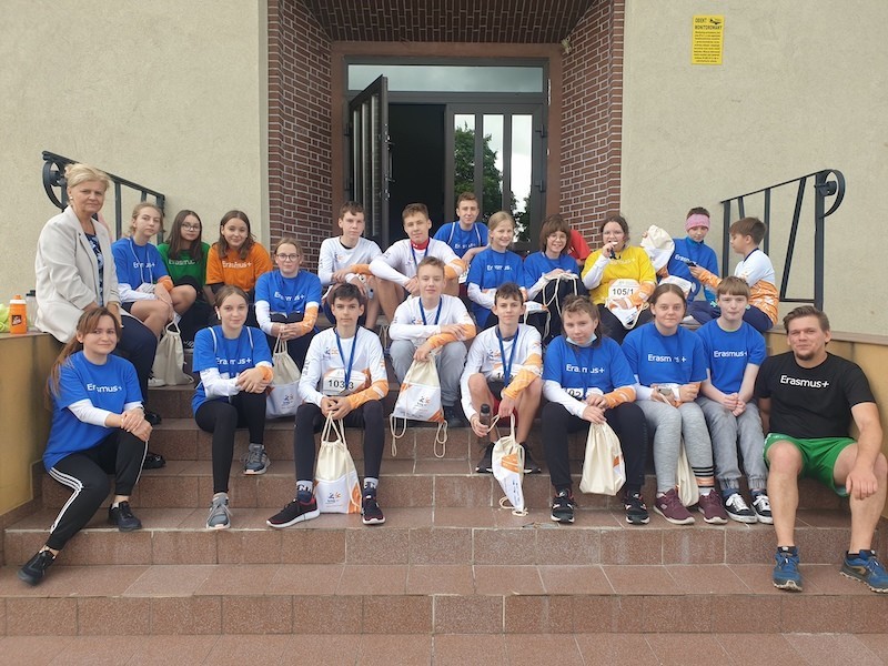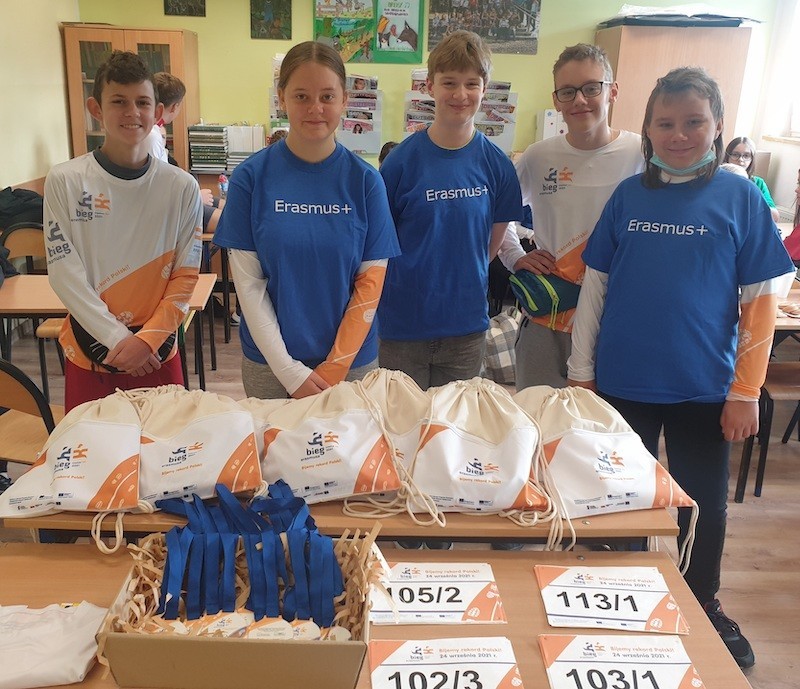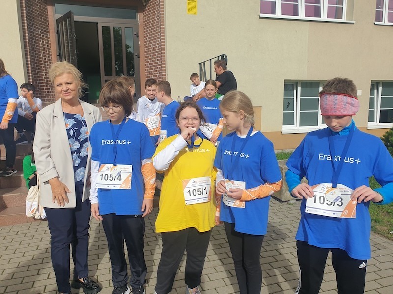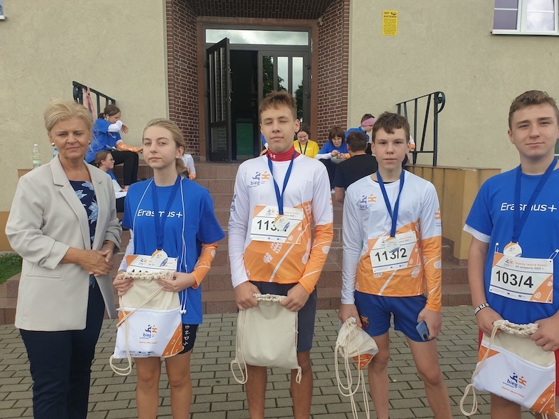 Z naszej szkoły startowały 4 drużyny w składzie z kl. 5a: Maja Tutakowska, Agata Kurzydło, Aleksander Szewczyk, Cezary Wetta, z kl. 8a: Maja Majak, Oskar Korszeń, Maksymilian Maszota, Jakub Miszka, z kl. 8b: Milena Młyńska, Kacper Kamiński, Piotr Szczegielniak, Oskar Płóciennik, oraz z kl. 4a i 8c Jan Romanowski, Kacper Antoniewicz, Zuzanna Przygocka, Hanna Mally. Podczas biegu uczniów wspierali nauczyciele - koordynator projektu Erasmus+ pani Katarzyna Wróblewska-Kurzydło oraz pan Michał Kościółek.