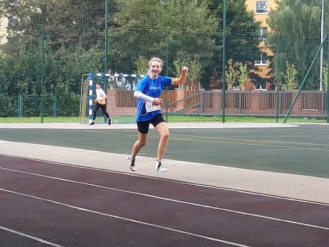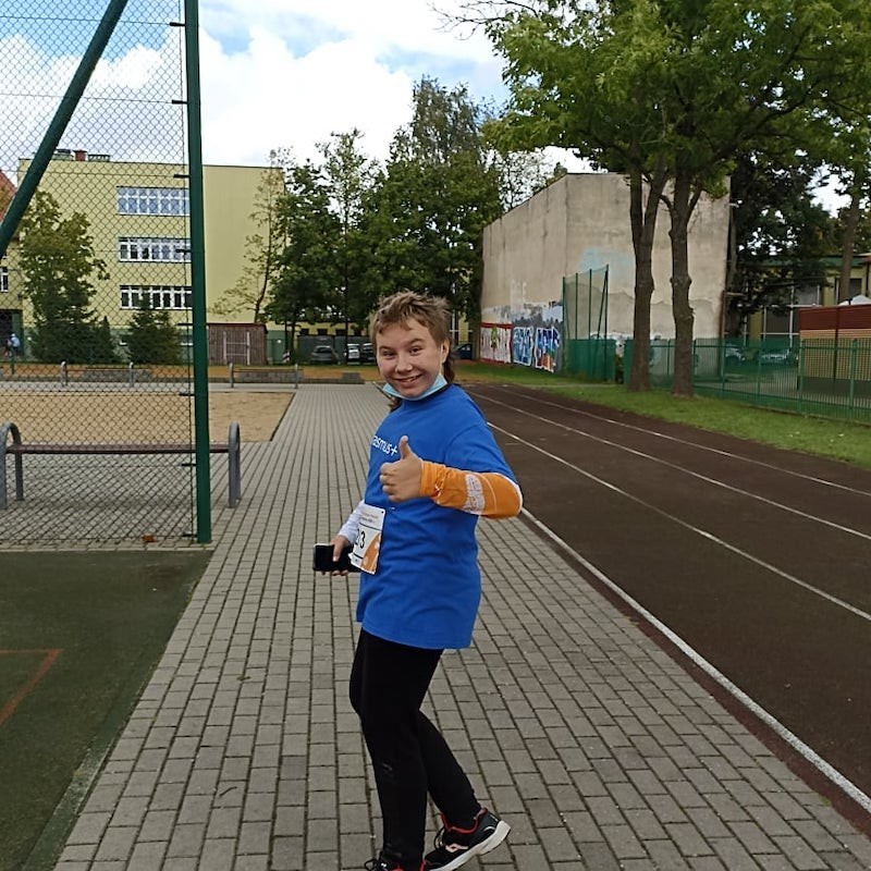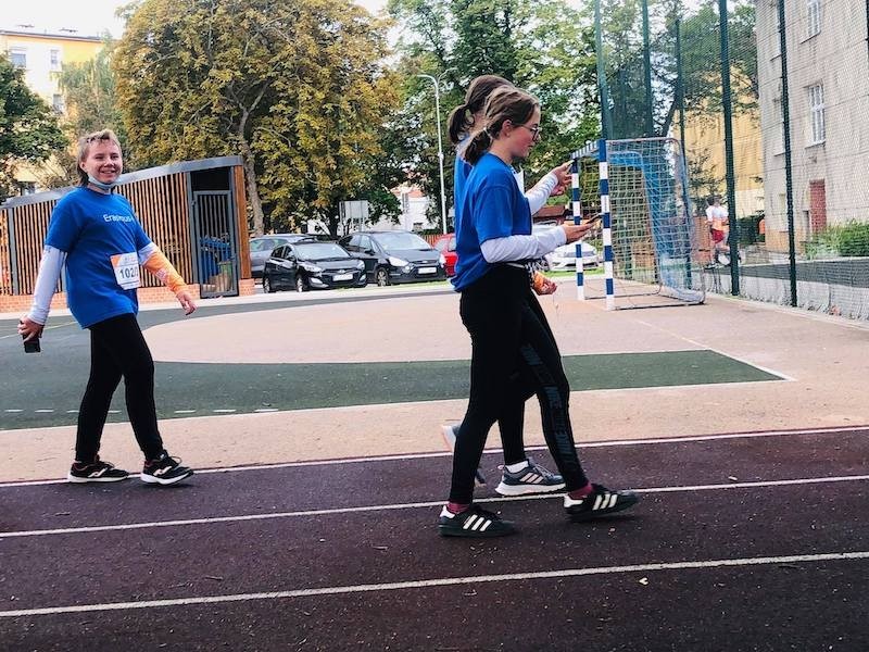 24 września biegaliśmy na szkolnym boisku, a wyniki naszych zmagań zostały przesłane do Warszawy. Czteroosobowe drużyny sztafetowe biegały przez godzinę. Chodziło jednak o to, aby w 60 minut pokonać jak najdłuższy dystans. Z całej Polski zgłosiło się ponad 1000 drużyn!