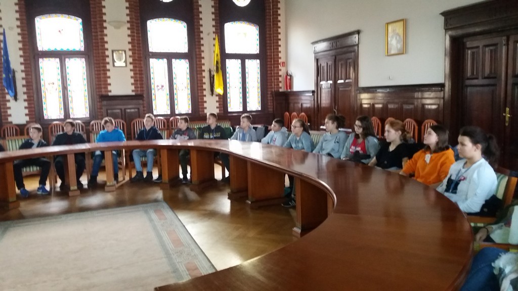W sali rajców uczniowie dowiedzieli się, jaka jest specyfika pracy w urzędzie miejskim, kto może pracować w tej instytucji , a także jakie studia należy ukończyć, by móc piastować urzędnicze stanowisko. Sekretarz miasta bardzo ciekawie i przystępnie opowiedział uczniom, z jakimi problemami borykają się samorządowcy, jak wiele spraw muszą załatwiać, by zadowolić mieszkańców miasta. Nie zabrakło także pytań ze strony uczniów, na które pan sekretarz cierpliwie i rzeczowo odpowiadał.