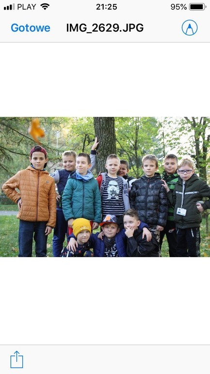 Korzystając z pięknego październikowego dnia uczniowie klasy IIa wraz z wychowawcą udali się na krótki jesienny spacerek, by w plenerze móc poszaleć trochę wśród kolorowych i liści i pobawić się na szkolnym placu zabaw. Dzieci były przeszczęśliwe, chętnie i z uśmiechem pozowały do zdjęć , podziwiając uroki jesiennej natury.