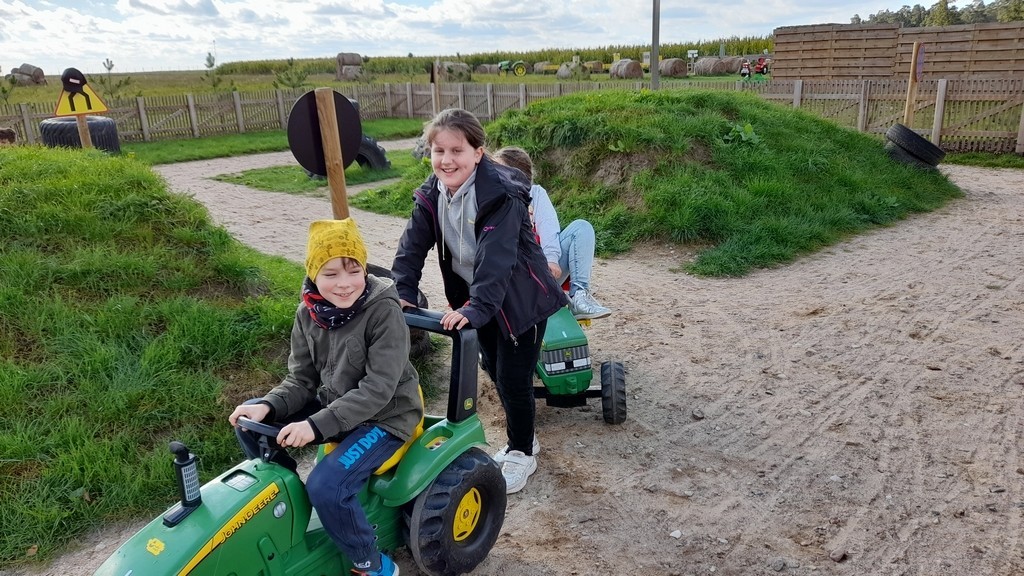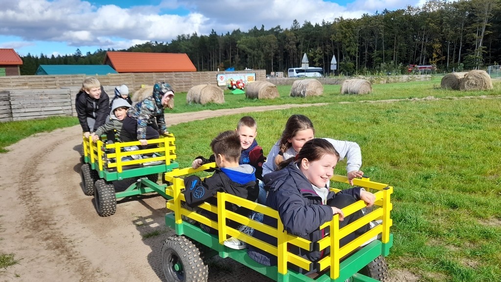 30 września był dla uczniów klasy IIa dniem niezwykle przyjemnym, pełnym uśmiechu i dobrej zabawy, drugoklasiści spędzili go bowiem na Farmie Alexa w Charbrowie. To niezwykłe miejsce pełne jest atrakcji związanych z wsią – rolnictwem oraz hodowlą zwierząt. Podczas pobytu uczniowie odkrywali kolejne zakątki tego miejsca, m.in. labirynt z kukurydzy, sprzęt rolniczy, karmili zwierzęta, przejechali się przyczepkami ciągniętymi przez traktor. Poza tym wzięli udział w spotkaniu z gospodarzem tego miejsca, czyli królikiem Alexem. Dzień na farmie możemy zaliczyć do wyjątkowo udanych i mamy nadzieję, że nie była to nasza ostatnia wizyta w tym miejscu.