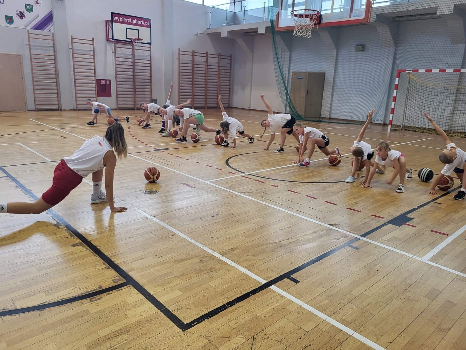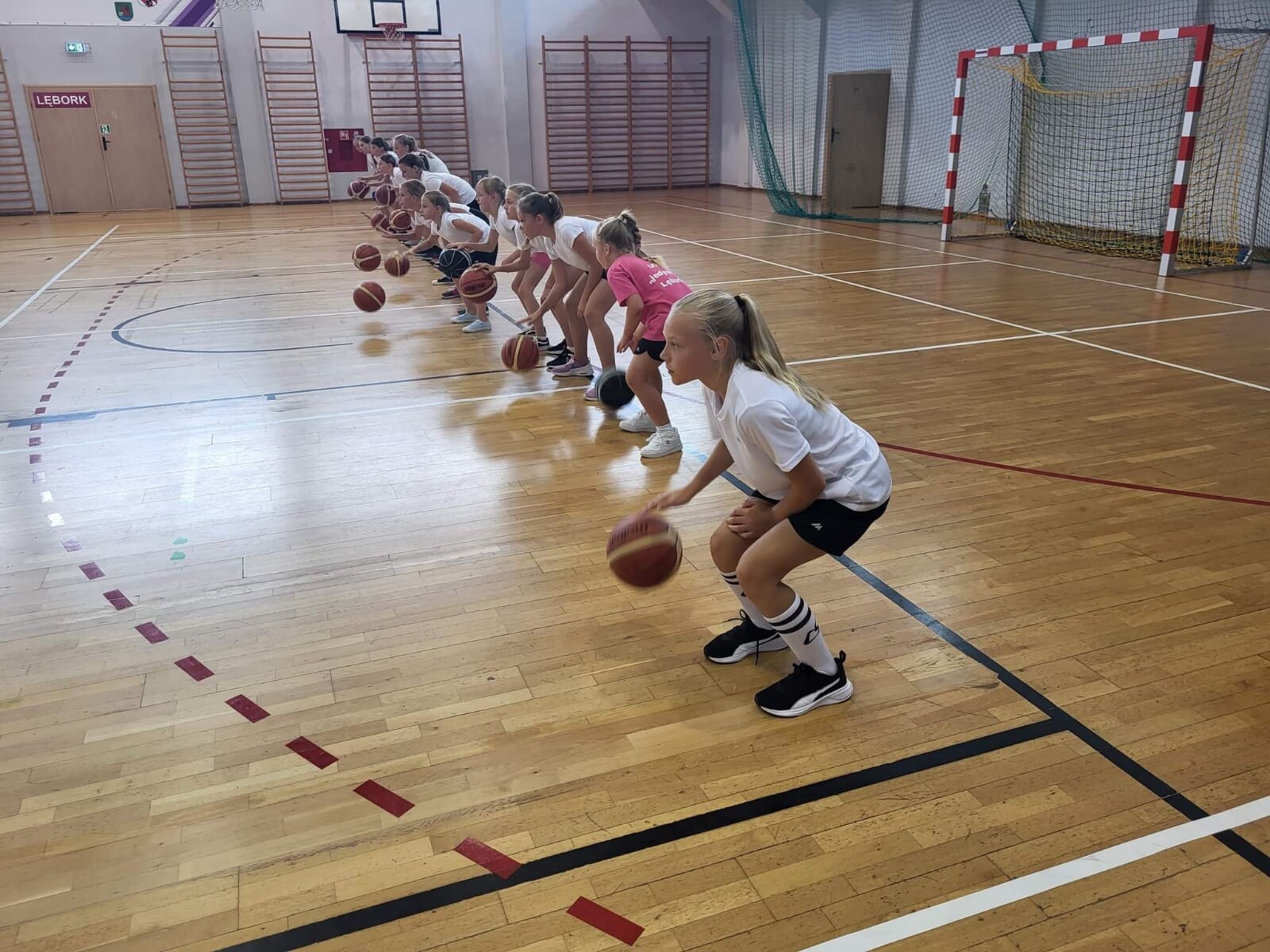 W ostatnim tygodniu sierpnia uczniowie naszej szkoły brali udział w treningach koszykówki zorganizowanych przez UKS „jedynka” Lębork. Zajęcia odbywały się w miejskiej hali sportowej w dwóch grupach, uczestniczyli w nich chłopcy oraz dziewczęta z klas III-V. Stanowiły one pierwszy etap przygotowań do rozgrywek ligowych, w których młodzi sportowcy niebawem wezmą udział. Początek rozgrywek zaplanowany został na połowę października , a trwać one będą do wiosny przyszłego roku. Zarówno dziewczęta jak i chłopcy bardzo sumiennie podchodzili do treningów i wszystkie ćwiczenia wykonywali z pełnym zaangażowaniem. Z pewnością zaprocentuje to w zbliżających się meczach. Grupa dziewczynek w ramach jednego z treningów spotkała się także z Kariną Szczurewską, absolwentką lęborskiej jedynki oraz wychowanką naszego klubu. Karina, obecnie zawodniczka trójmiejskiego klubu na poziomie pierwszej ligi, wprowadzała młodsze koleżanki w tajniki gry oraz odpowiadała na liczne pytania dotyczące profesjonalnego sportu. Miłym akcentem na zakończenie solidnie przepracowanego tygodnia były z pewnością drobne upominki, jakimi obdarowani zostali wszyscy uczestnicy zajęć.