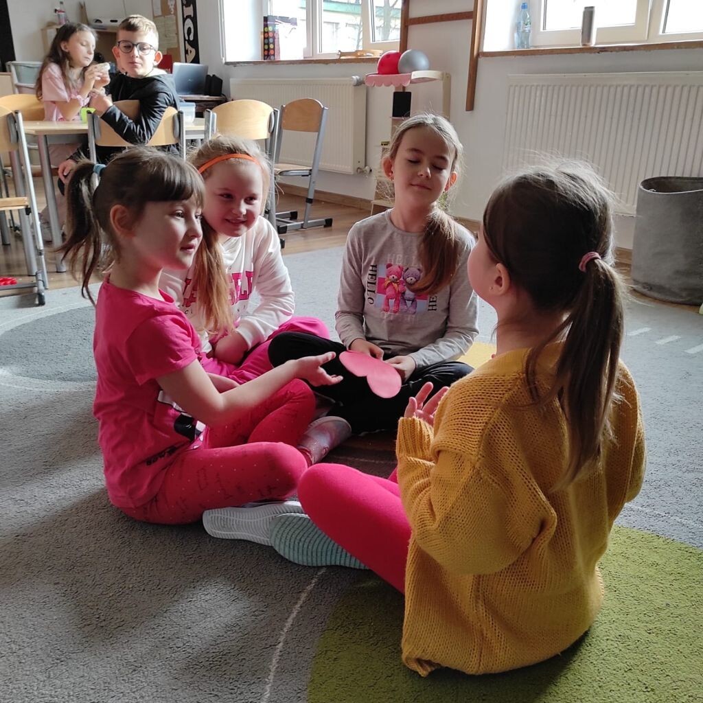 14 lutego dzieci uczęszczające do szkolnej świetlicy uczestniczyły w zajęciach poświęconych tematyce walentynek. Dzieci dowiedziały się, że to wyjątkowy dzień, aby okazać miłość i przywiązanie osobom bliskim np. rodzicom i rodzinie, jak również sympatię, przyjaźń oraz szacunek - kolegom i koleżankom. Dzieci uczestniczyły w zabawach, w których nie zabrakło zagadek czy prac plastycznych, z których utworzona została walentynkowa gazetka. Dodatkową atrakcją była pamiątkowa fotografia do której wykonania posłużyła walentynkowa fotobudka.
