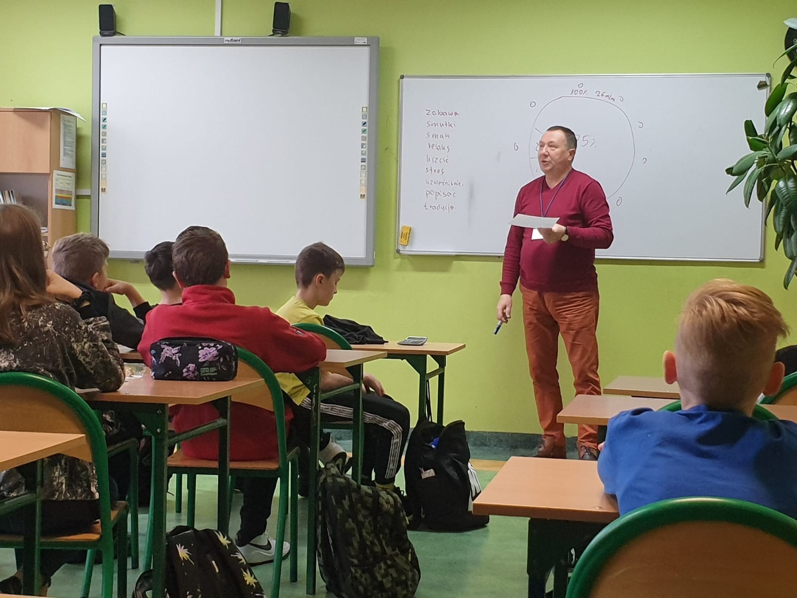 W dniach 14 i 15 grudnia br. uczniowie klas siódmych uczestniczyli w Warsztatach profilaktycznych Debata. Zajęcia przeprowadzone zostały przez pana Aleksandra Szczepańskiego. Ich celem było pokazanie młodzieży zagrożeń, jakie niesie ze sobą alkohol, który jest niestety pierwszą i najbardziej dostępną substancją psychoaktywną, po którą sięgają nastolatkowie. Niestety alkohol zmienia odbiór świata – pokazuje go innym niż jest w rzeczywistości, przez co jest powodem wielu nieporozumień, nieszczęść, wypadków czy złych decyzji.