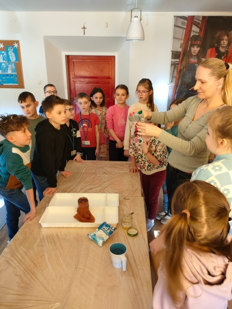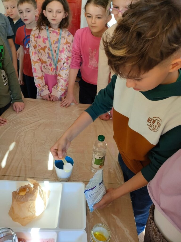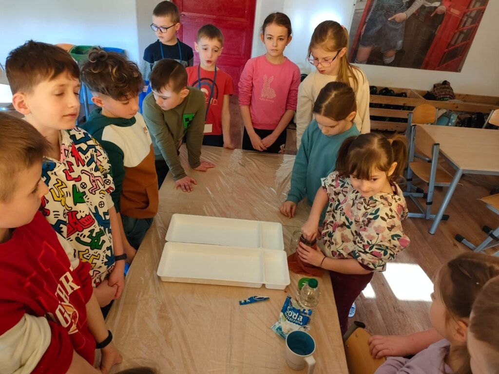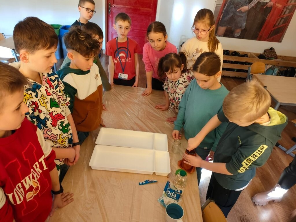 W środę, 6 marca, dzieci uczęszczające do szkolnej świetlicy uczestniczyły w zajęciach poświęconych tematyce wulkanów. Dowiedziały się jak powstają te wyjątkowe wytwory natury oraz, że to rodzaj gór z których podczas erupcji może wydobywać się ognista lawa. Wszyscy mogli wziąć udział w eksperymencie wybuchu wulkanu. Tego typu eksperyment można wykonać również w domu - oczywiście w obecności osób dorosłych. Potrzebne są jedynie: ocet, soda oczyszczona, woda, odrobina płynu do naczyń i ewentualnie czerwona farbka. Efekt "wow" gwarantowany!