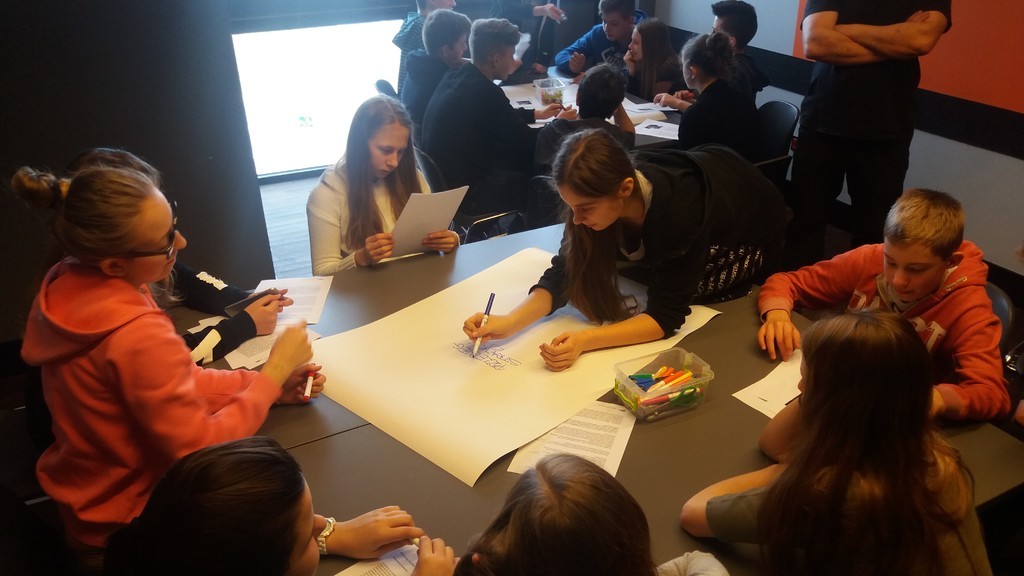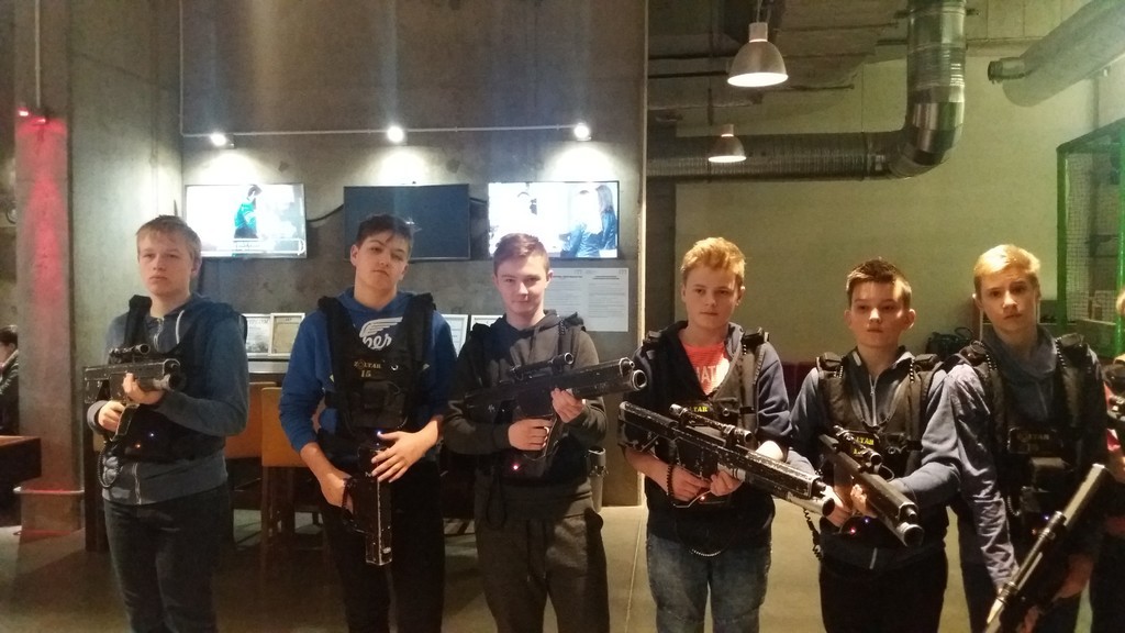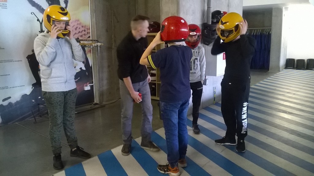 Po intensywnej pracy warsztatowej obie klasy udały się do Fun Areny, gdzie na ponad 9 tysiącach metrów kwadratowych można skorzystać z wielu atrakcji. Nasi uczniowie spędzili aktywnie czas w strefie ZOLTAR (paintball laserowy), skorzystali z mini parku trampolin pod opieką instruktora, jeździli na gokartach elektrycznych, a także przeżyli chwile grozy w pokojach tematycznych - Escaperooms.