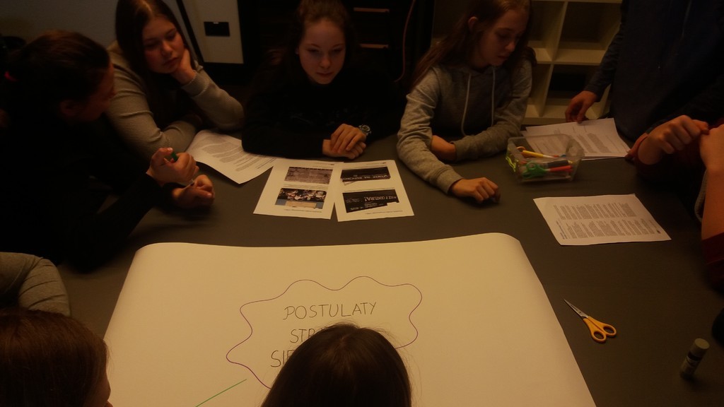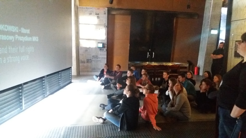 Uczniowie IA wzięli udział w zajęciach warsztatowych pt. „Narodziny Solidarności”, podczas których pracowali w trzech grupach i na podstawie materiałów archiwalnych przeanalizowali najważniejsze momenty strajku w Stoczni Gdańskiej, poznali liderów strajku i jego najważniejsze postulaty. Uczniowie klasy Ic uczestniczyli w warsztatach pt.: „Jak dobrze mieć sąsiada”, podczas których poruszali problem dyskryminacji. Za pomocą różnorodnych ćwiczeń, poprzez pracę w grupach w sali warsztatowej i sali wystawowej, uczniowie zapoznali się z prawami człowieka zaprezentowanymi w 64 językach. Wybierali najważniejsze dla nich prawa i wspólnie je omawiali.