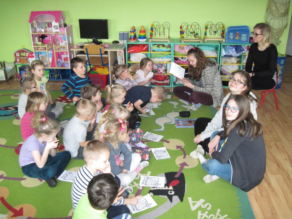 Dzień wcześniej uczennice klasy IIb pod opieką p. W. Rutkiewicz odwiedziły też sześciolatków z Przedszkola nr 1. Dziewczęta zaprezentowały przedszkolakom bajeczki związane z Wielkanocą a także przypomniały, że w dniu 2 kwietnia obchodzony jest Międzynarodowy Dzień Książki dla Dzieci. Data 2 kwietnia nie jest przypadkowa, ponieważ wtedy właśnie urodziny obchodzi duński baśniopisarz Hans Christian Andersen. Święto to zaś ma na celu rozpowszechnianie książek dla najmłodszych czytelników oraz wspieranie czytania przez dzieci.