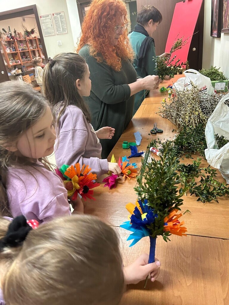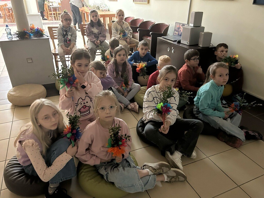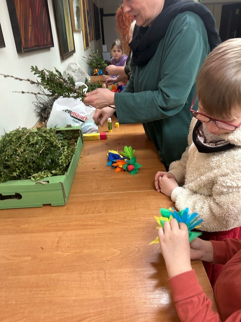 We wtorek uczniowie klasy Ic wybrali się na warsztaty do Muzeum w Lęborku. Ponieważ zbliża się niedziela palmowa, pierwszoklasiści przy pomocy pań z muzeum wykonywali palmy wielkanocne. Skupienie przy pracy oraz precyzja wykonania zaowocowały przepięknie zrobionymi palemkami. Już w piątek wykorzystają zdobyte umiejętności przy wspólnym wykonywaniu palm z rodzicami w domu. Podczas warsztatów w muzeum dzieci zapoznały się również z tradycjami wielkanocnymi na Kaszubach. Już wiedzą, co znaczy śmigać i dygnąć w lany poniedziałek.