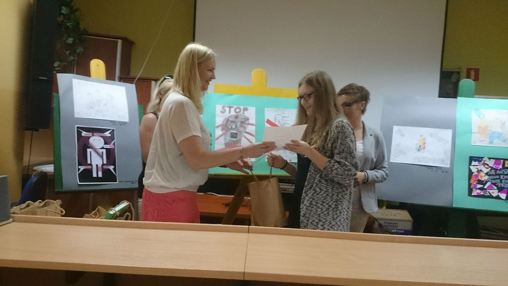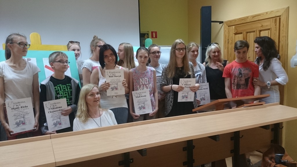 Dnia 30.05.2016r. w Zespole Szkół nr 3 w Lęborku odbyło się uroczyste podsumowanie konkursu literacko- plastycznego pod hasłem ,,Moje życie bez przemocy" . Inicjatorem zmagań konkursowych było lęborskie Stowarzyszenie na Rzecz Przeciwdziałania Przemocy ,,Szansa". Miło nam poinformować, że uczennica naszej szkoły- Wiktoria Wiejak z kl. IIIb znalazła się w gronie laureatów konkursu w kategorii proza.
