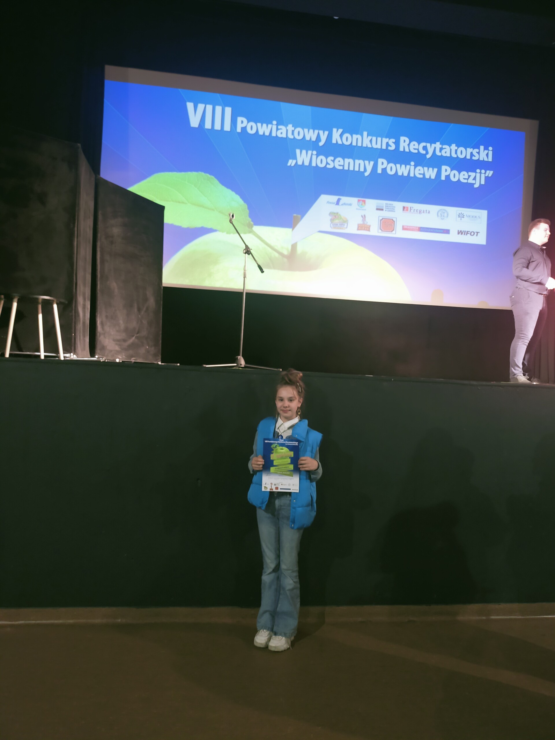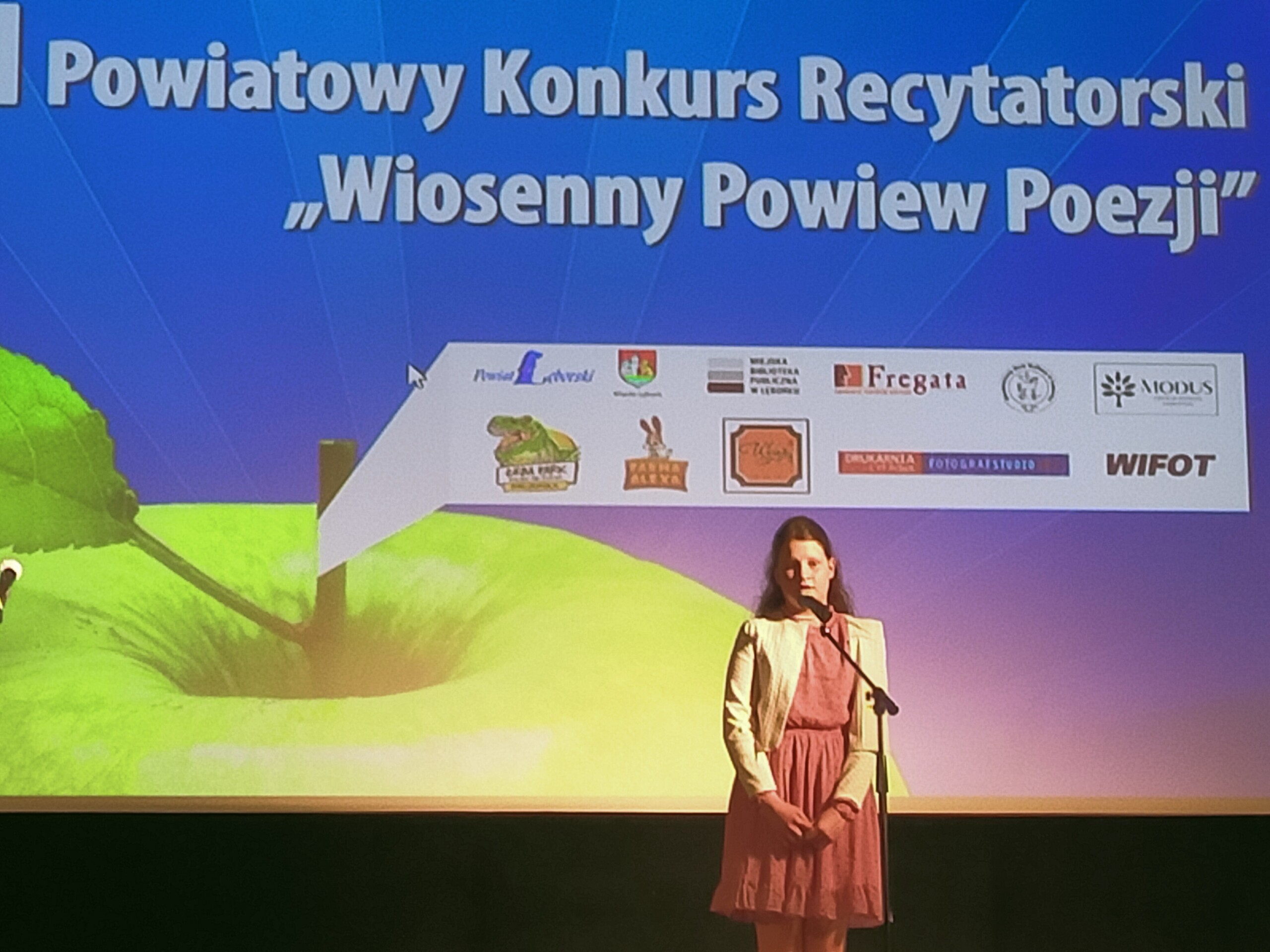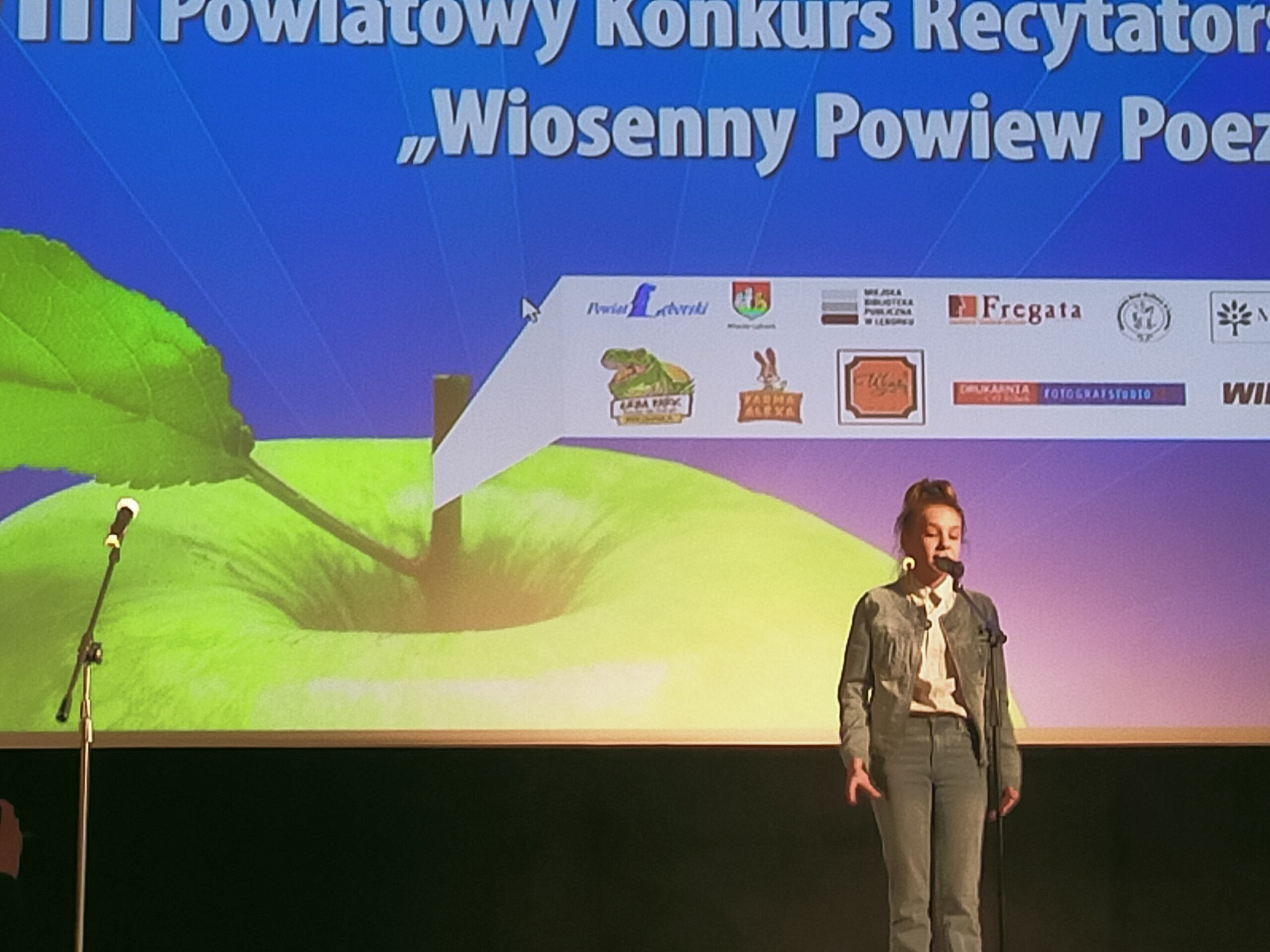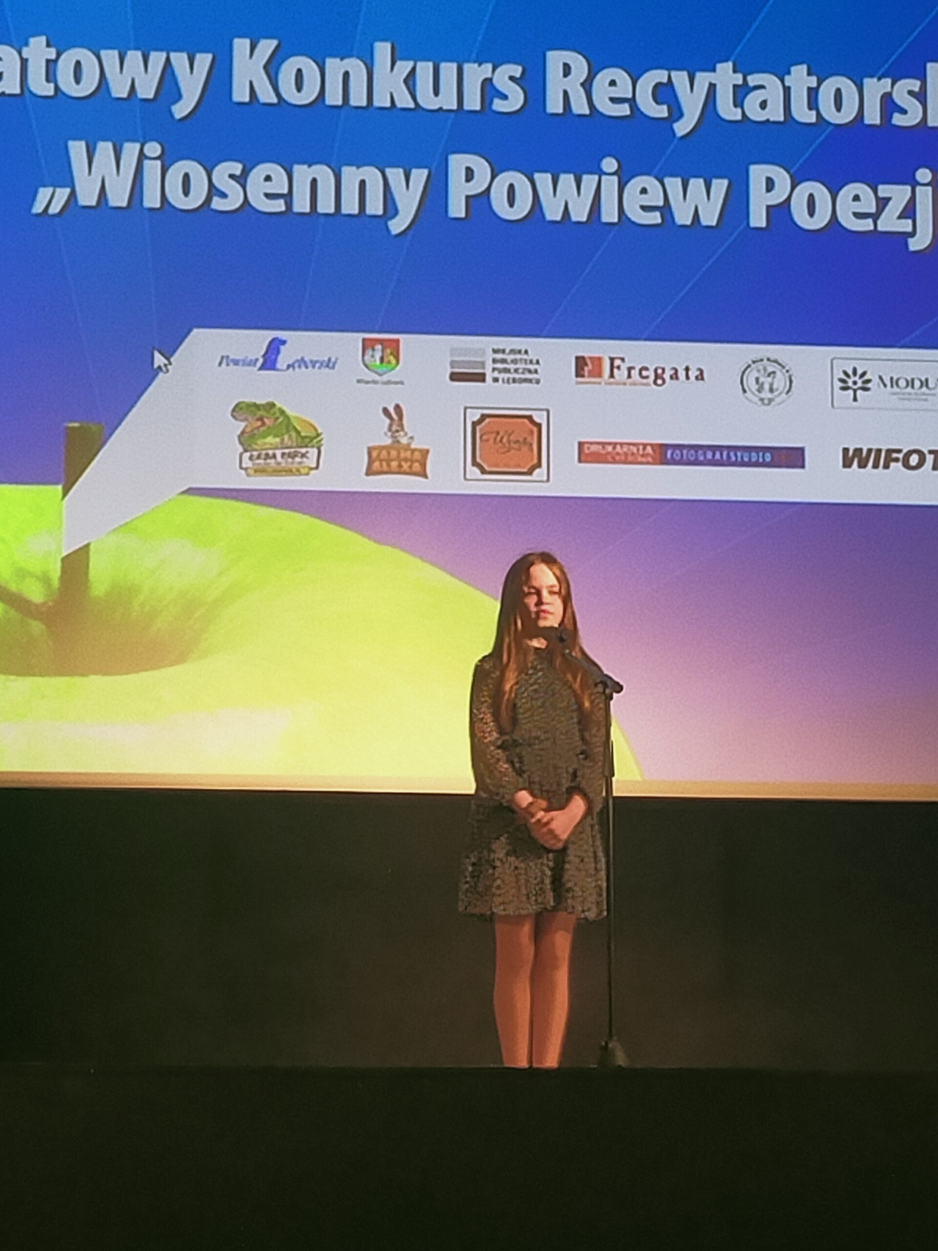 Wiosenny Powiew Poezji to Powiatowy Konkurs Recytatorski, który w tym roku miał już swoją ósmą odsłonę. W Lęborskim Centrum Kultury Fregata, 24 kwietnia odbył się finał tego popularnego wydarzenia. W recytatorskie szranki stanęło 32 uczestników w trzech kategoriach wiekowych. Naszą szkołę reprezentowały trzy uczennice : Amelia Jadowska z 6b, Maja Broda i Alicja Rapalska - obie z 5a. Dziewczęta pięknie wykonały przygotowane przez siebie utwory poetyckie, zaś jedna z nich- Amelka Jadowska z 6b wywalczyła II miejsce w swojej kategorii wiekowej.