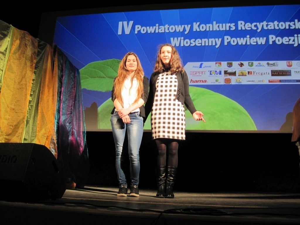 Już po raz czwarty w Lęborku odbyła się finałowa gala Powiatowego Konkursu Recytatorskiego Wiosenny Powiew Poezji im. Gustawa Holoubka. Dnia 17 marca w Lęborskim Centrum Kultury Fregata mogliśmy obcować z poezją w wykonaniu dzieci i młodzieży szkół naszego powiatu . Gimnazjum nr 1 w Lęborku reprezentowały dwie recytatorki: Roksana Neumiler z klasy IIIa oraz Wiktoria Wiśniewska z Ib, które w czasie konkursu nie miały sobie równych i w kategorii szkół gimnazjalnych zajęły: Roksana - I , zaś Wiktoria- II miejsce.