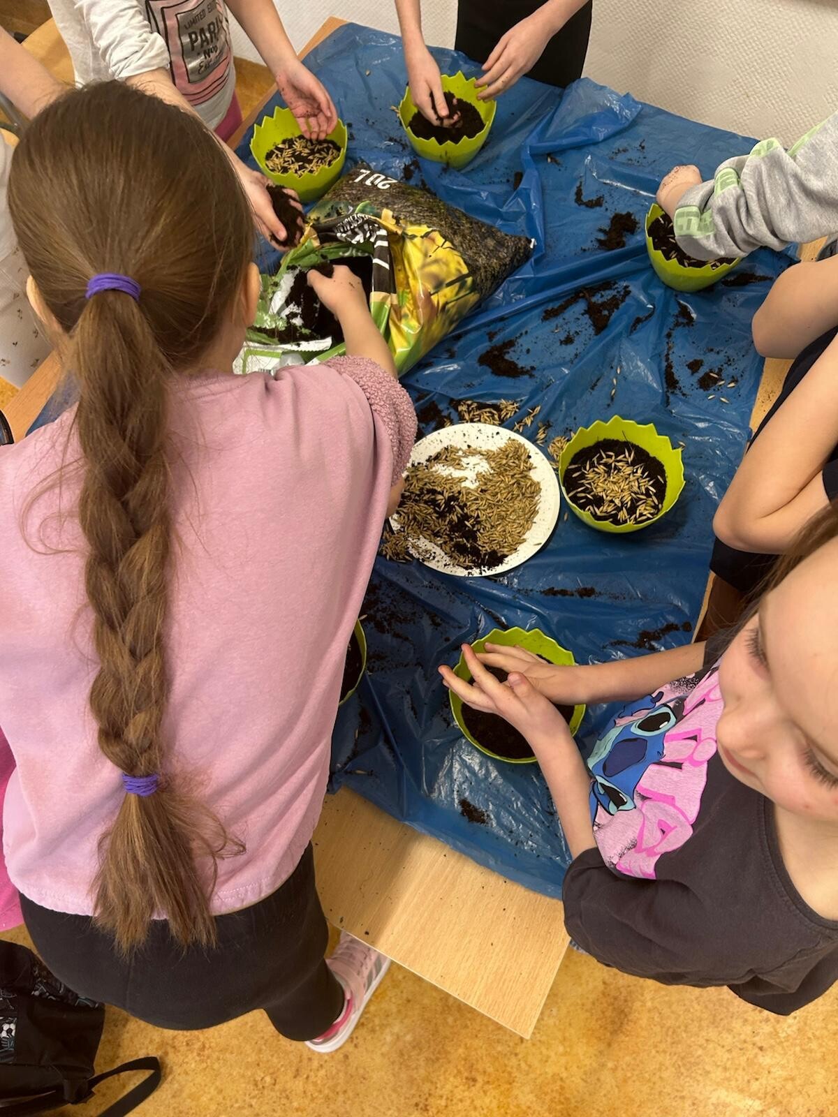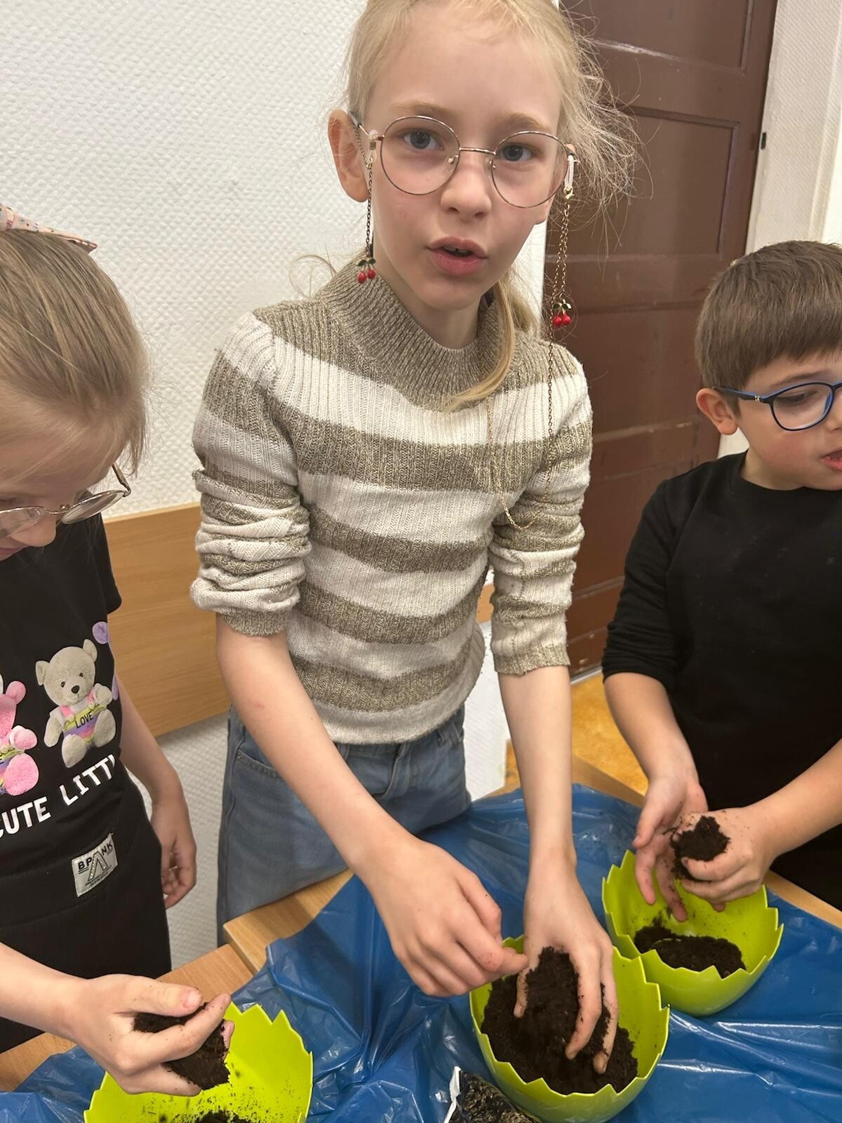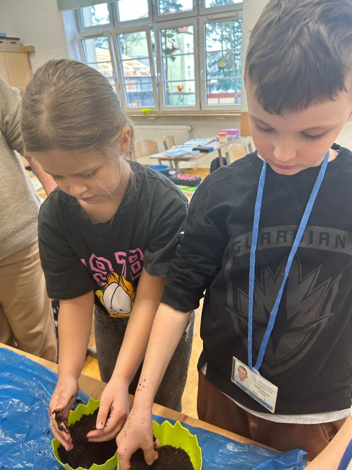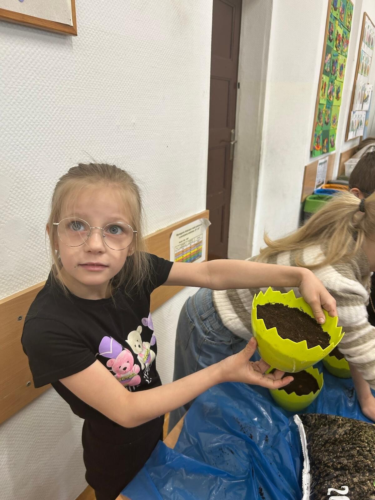 Dziś, podczas edukacji przyrodniczej, uczniowie klasy 1 c poznawali rodzaje ziaren zbóż, a także etapy wzrostu roślin. Przy okazji zasiali owies, którym przyozdobią świąteczne stoły.