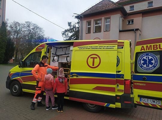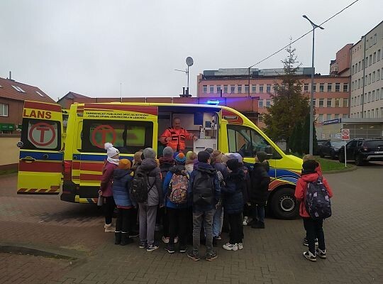 Uczniowie z klasy 4 C oraz 5 C wzięli udział w spotkaniu z ratownikami medycznymi pracującym w lęborskim szpitalu. Ratownicy w ciekawy i obrazowy sposób omówili, na czym polega praca w Zespole Ratownictwa Medycznego, co należy do ich zadań, jakie są blaski i cienie ich zawodu. Uczniowie mieli okazję zapoznać się też z działaniem wybranej aparatury medycznej. Podczas spotkania zaprezentowano działanie urządzenia do kompresji klatki piersiowej, pozwalającego na zmniejszenie obciążenia osób udzielających pomocy podczas resuscytacji krążeniowo-oddechowej. Zaprezentowano też działanie kardiomonitora, defibrylatora i pulsoksymetru. Kilku ochotników mogło zbadać swoje tętno i nasycenie krwi tlenem. Największą atrakcją był chyba jednak dla uczniów w pełni wyposażony ambulans medyczny, który mogli dokładnie obejrzeć z zewnątrz i w środku.