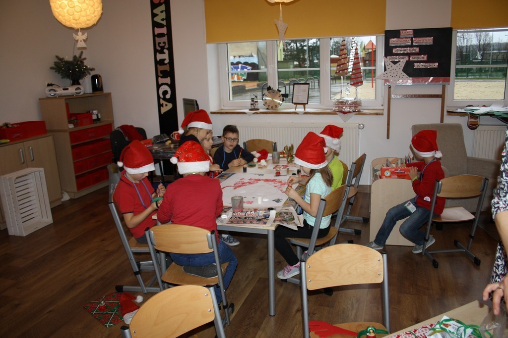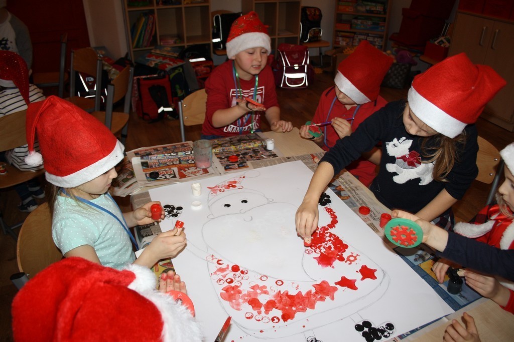 W świetlicy szkolnej powstały prace plastyczne (oczywiście z Mikołajem w roli głównej), które ozdobią gabinet pierwszaków.