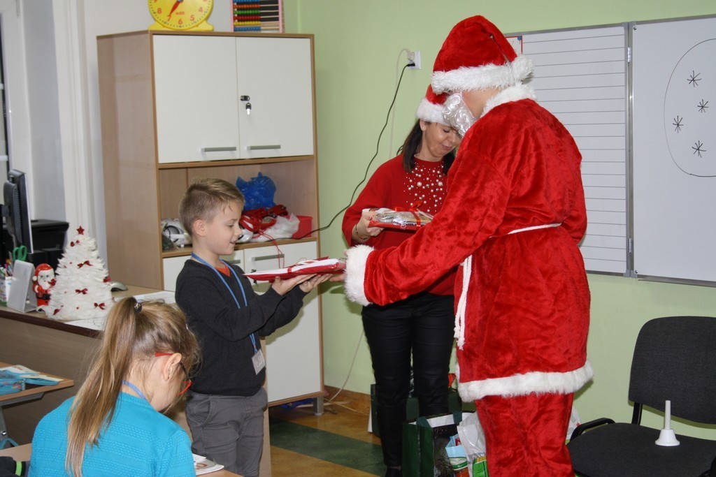 W środę - 6 grudnia- pierwszoklasistów odwiedził długo oczekiwany gość. Wizyta św. Mikołaja to dobry znak, który świadczy o tym, że dzieci były grzeczne a tym samym zasłużyły na prezenty. Pojawienie się Mikołaja wzbudziło wiele emocji, wprowadziło wszystkich w radosny, świąteczny klimat. Dzieci otrzymały prezenty.