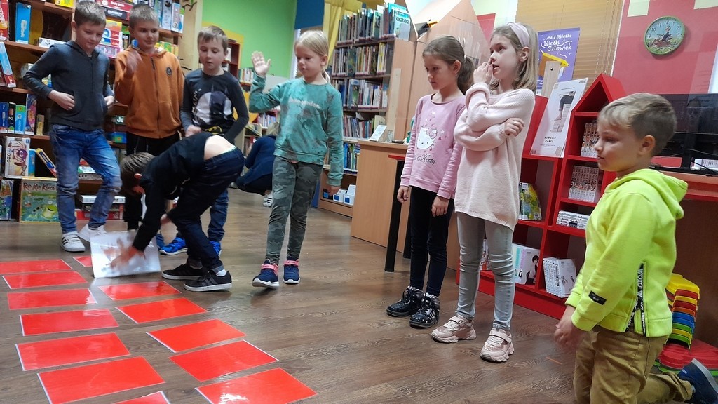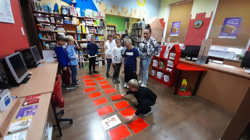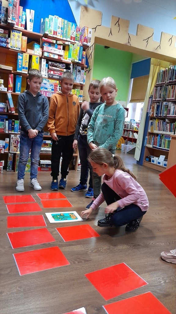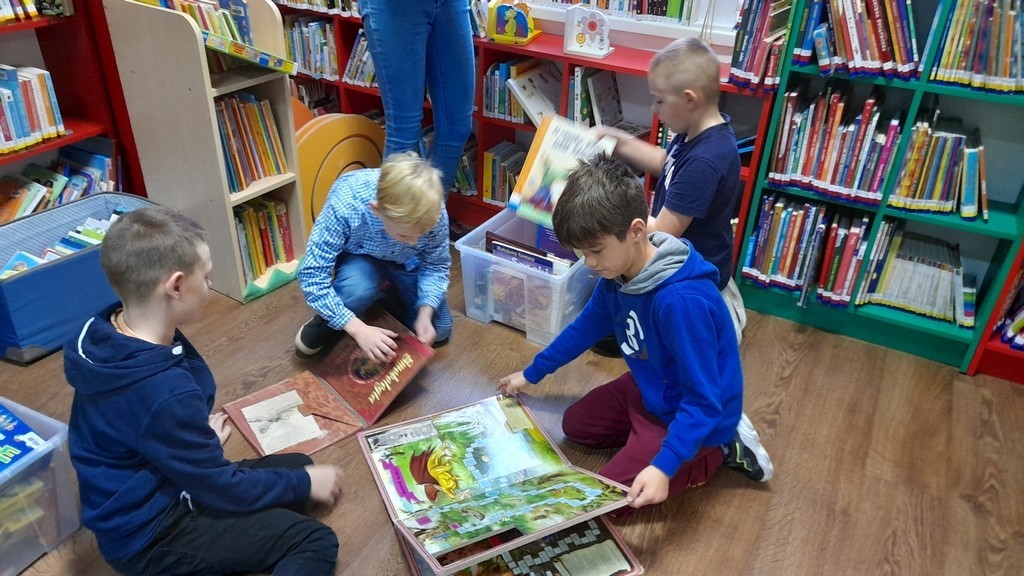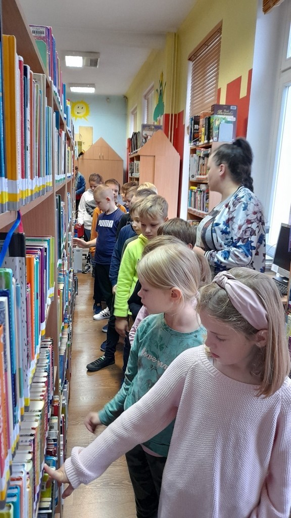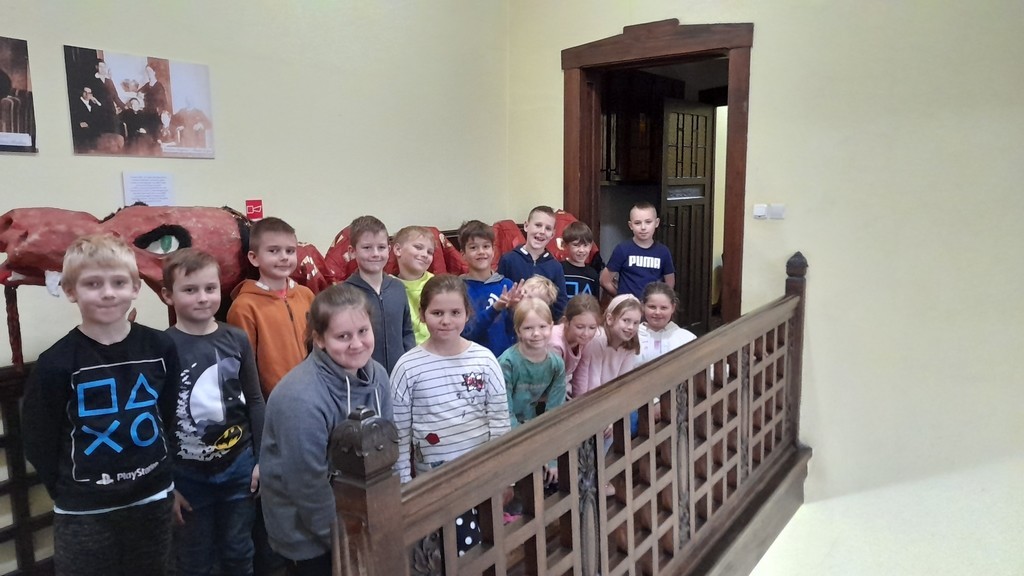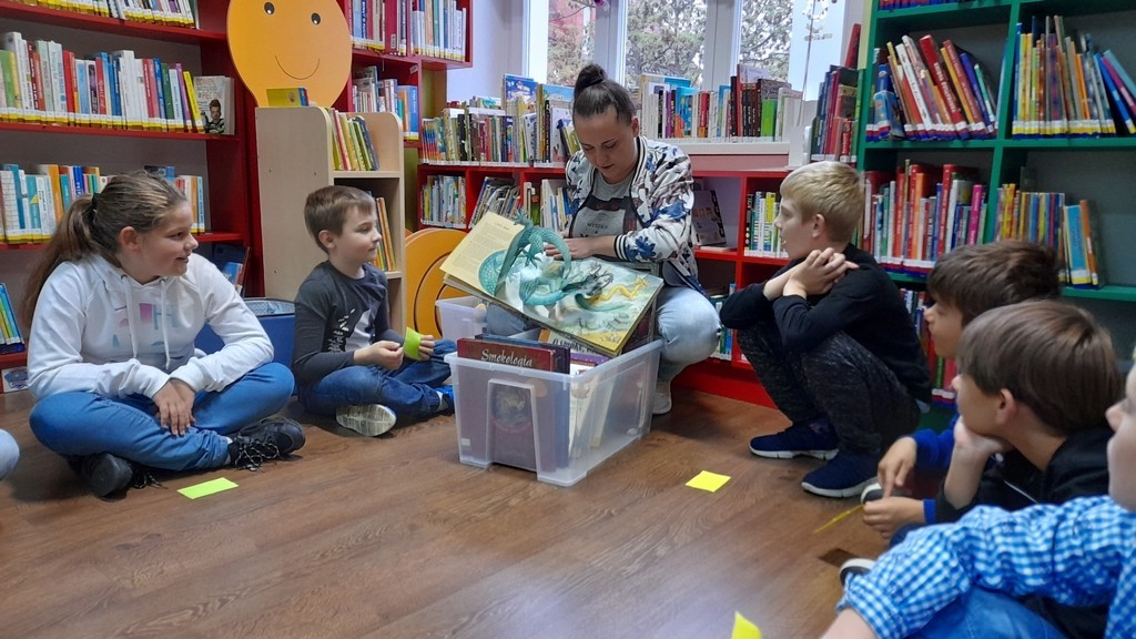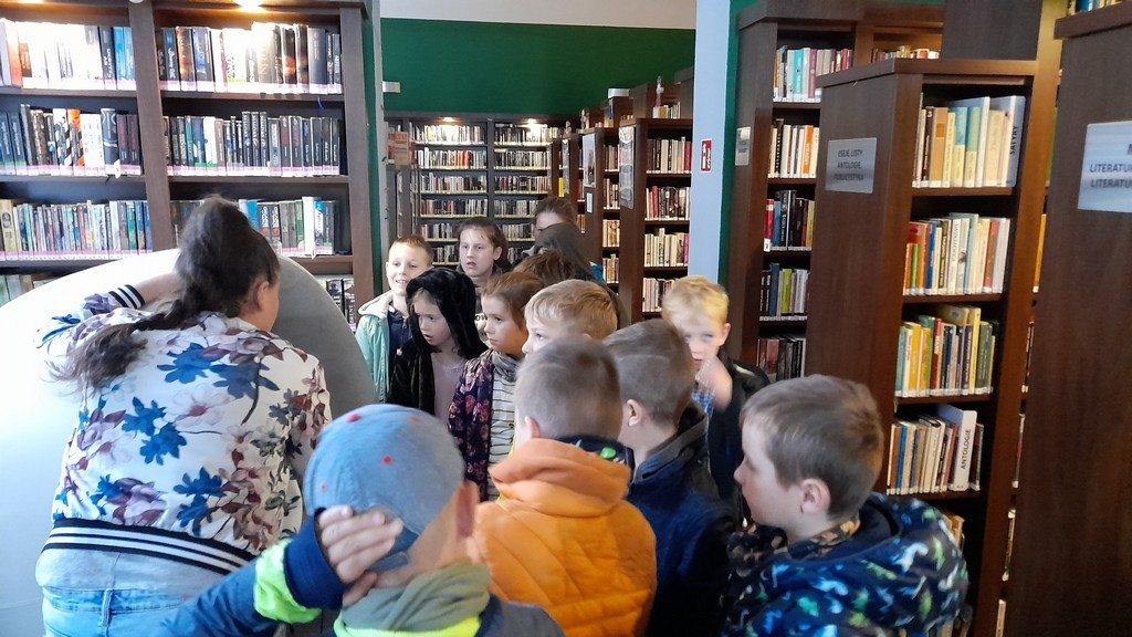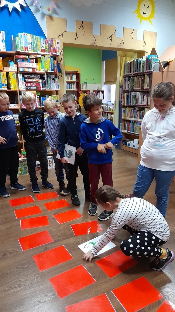 Uczniowie klas: IIa i IIb, omawiając tematy związane z książkami, wybrali się na lekcje biblioteczne do Miejskiej Biblioteki Publicznej. Temat zajęć brzmiał: „Czy w bibliotece żyją smoki? Prezentacja zbiorów ze smoczej kolekcji”. Uczniowie mieli okazję wysłuchać bajki o groźnym smoku, obejrzeć gry planszowe oraz książki tematycznie związane z legendarnym gadem. Ponadto pokonywały smoczy labirynt i grały w gadzie memory. Duże wrażenie na uczniach zrobiły zbiory Biblioteki Miejskiej zarówno te dla dzieci, jak i dorosłych. Na koniec drugoklasiści odwiedzili Smoczą Jamę - miejsce wielu imprez i uroczystości. Mamy nadzieję, że po wizycie wielu uczniów będzie korzystało z biblioteki, wypożyczało książki i tym samym poszerzało swoje umiejętności czytelnicze oraz wiedzę.