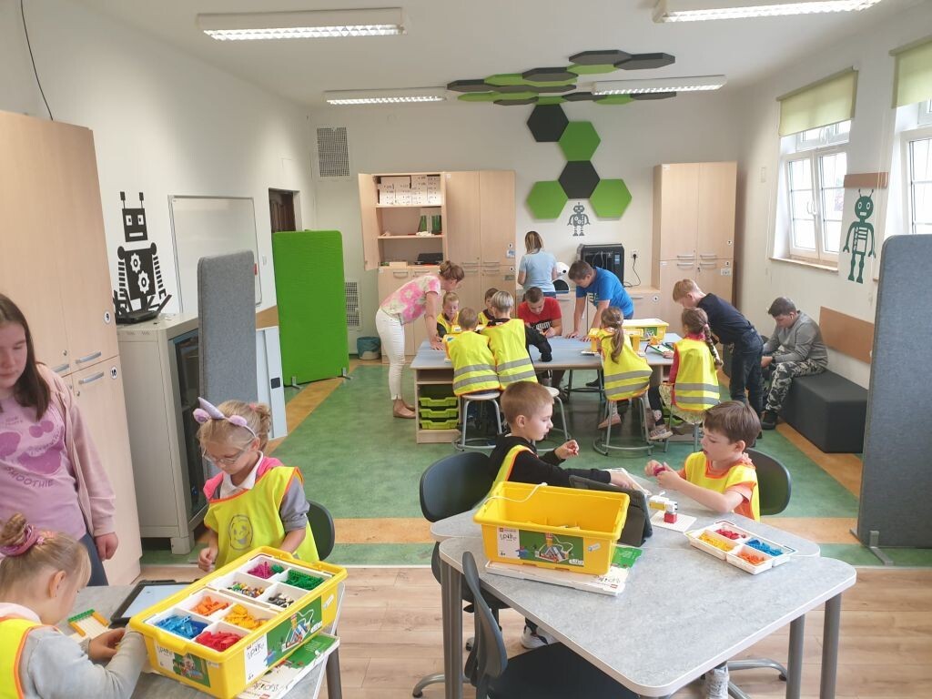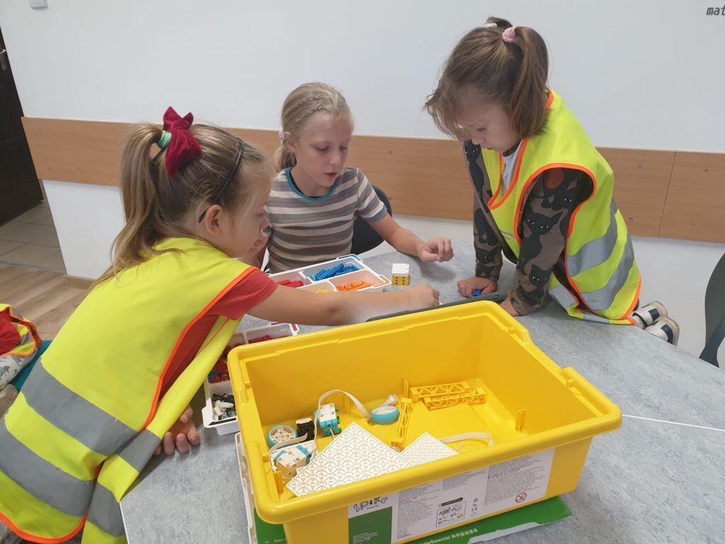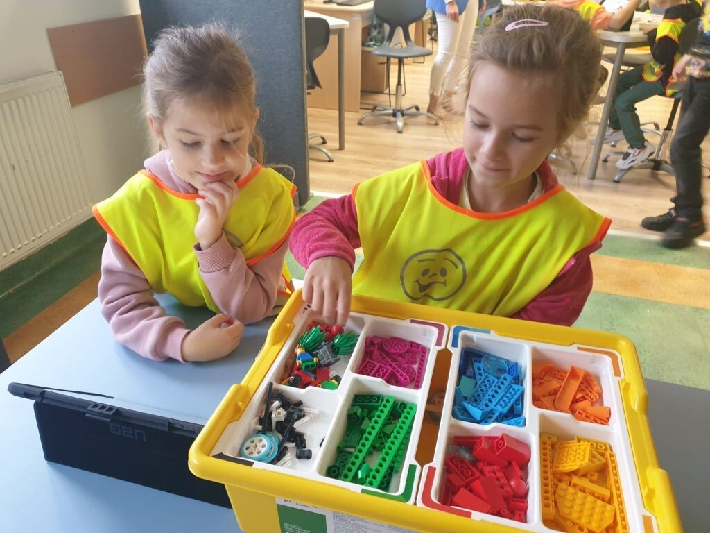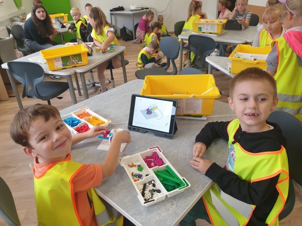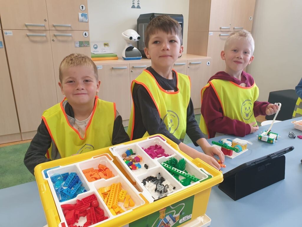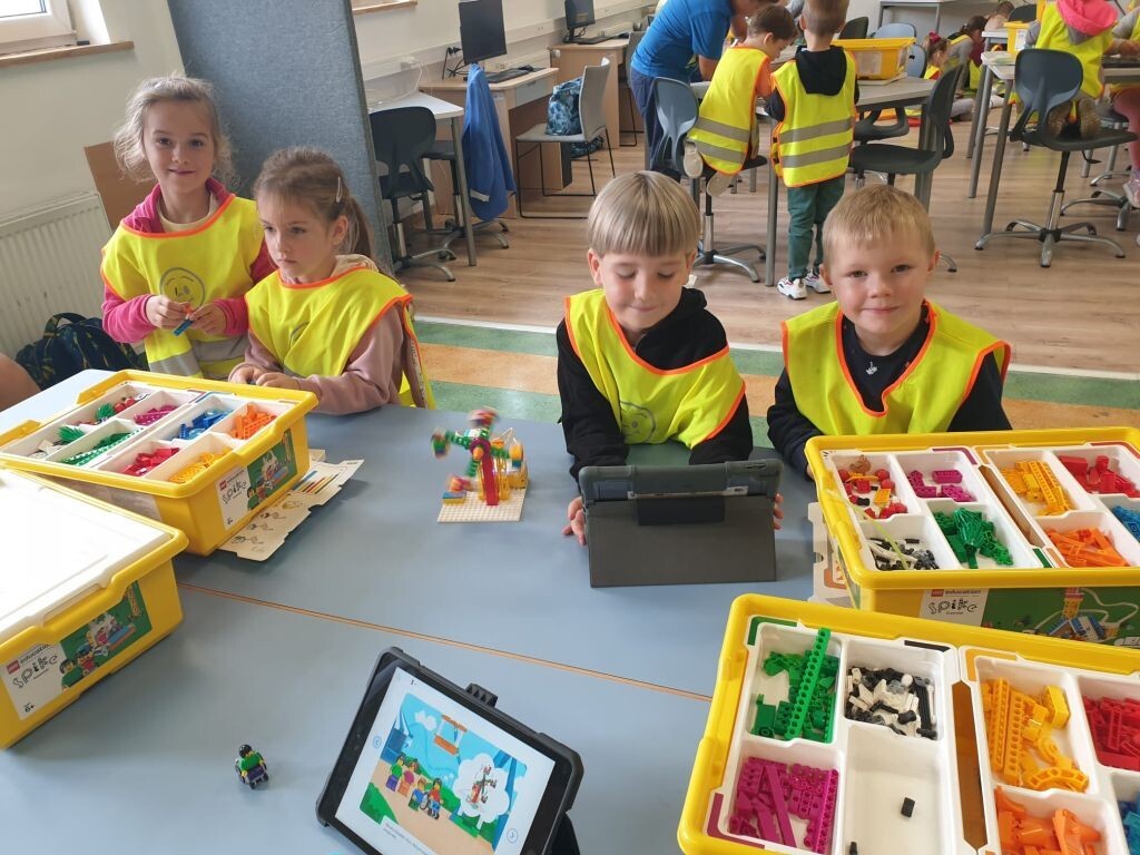 Dzisiaj odwiedziły nas przedszkolaki z Przedszkola nr 10 w Lęborku wraz ze swoją panią Wiolettą Szafrankiewicz. Przyszłe szkolniaki pod opieką pań: Agnieszki Jankowskiej i Karoliny Sopińskiej-Śpica oraz uczniów klasy VIb tworzyły konstrukcje z klocków Lego Spike, obsługiwały roboty Photon oraz powtarzały angielskie nazwy zwierząt z Emysem. Nauka i zabawa, zabawa i nauka – to był miło i pożytecznie spędzony czas!