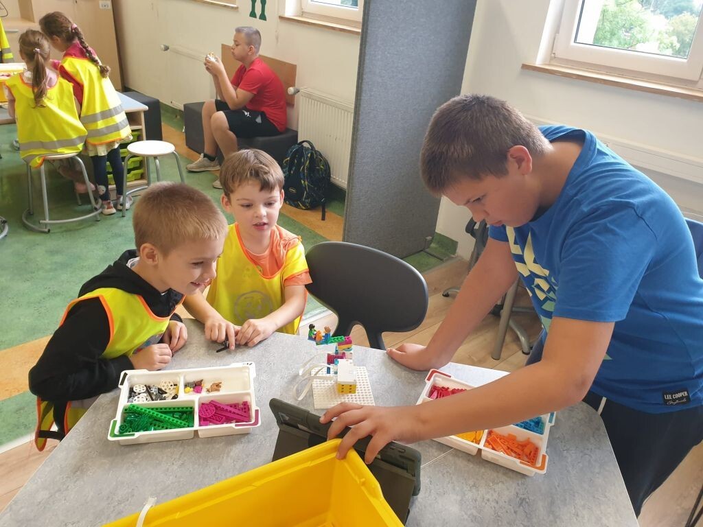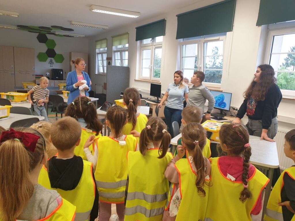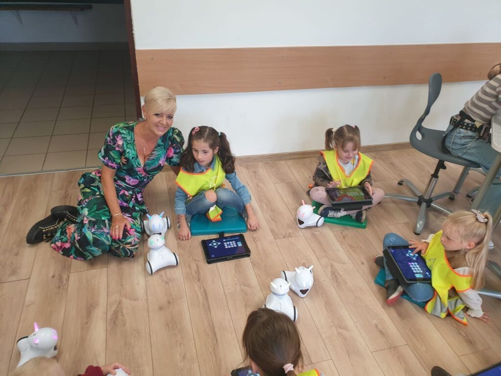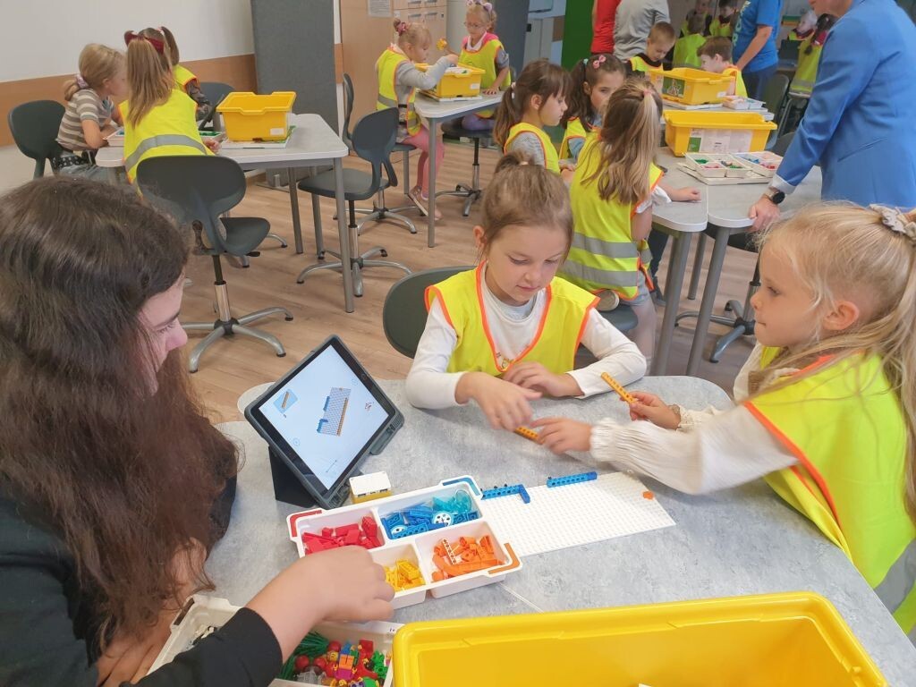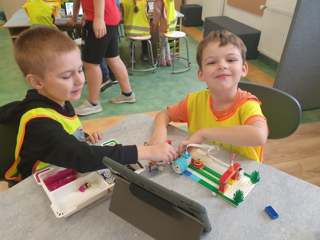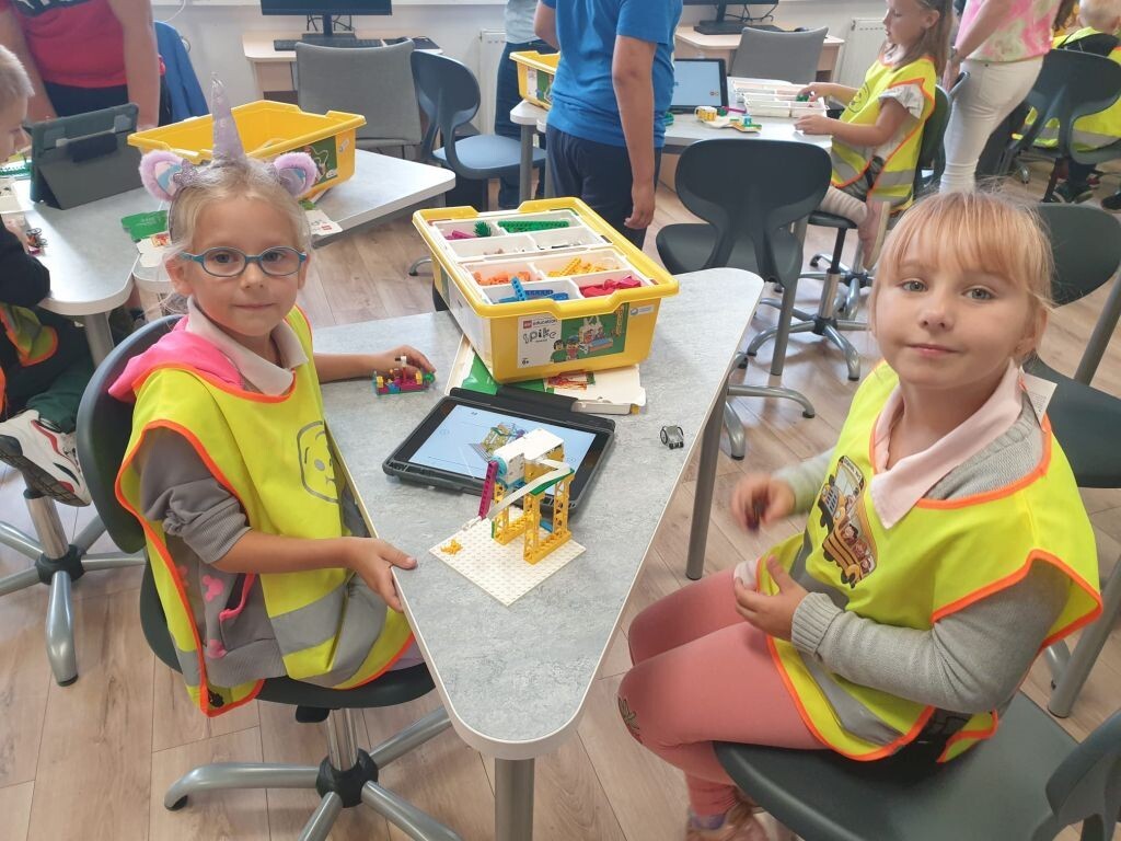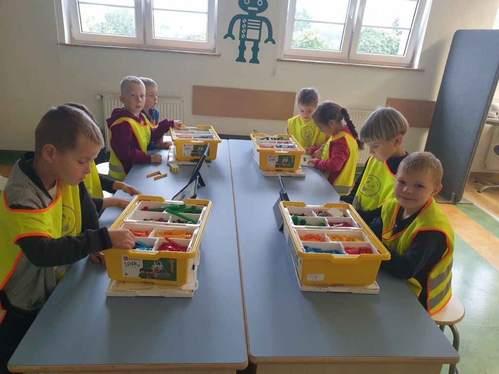 Dzisiaj odwiedziły nas przedszkolaki z Przedszkola nr 10 w Lęborku wraz ze swoją panią Wiolettą Szafrankiewicz. Przyszłe szkolniaki pod opieką pań: Agnieszki Jankowskiej i Karoliny Sopińskiej-Śpica oraz uczniów klasy VIb tworzyły konstrukcje z klocków Lego Spike, obsługiwały roboty Photon oraz powtarzały angielskie nazwy zwierząt z Emysem. Nauka i zabawa, zabawa i nauka – to był miło i pożytecznie spędzony czas!
