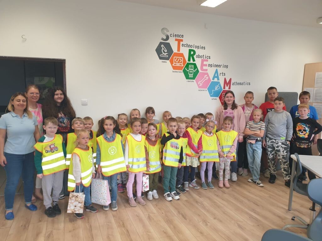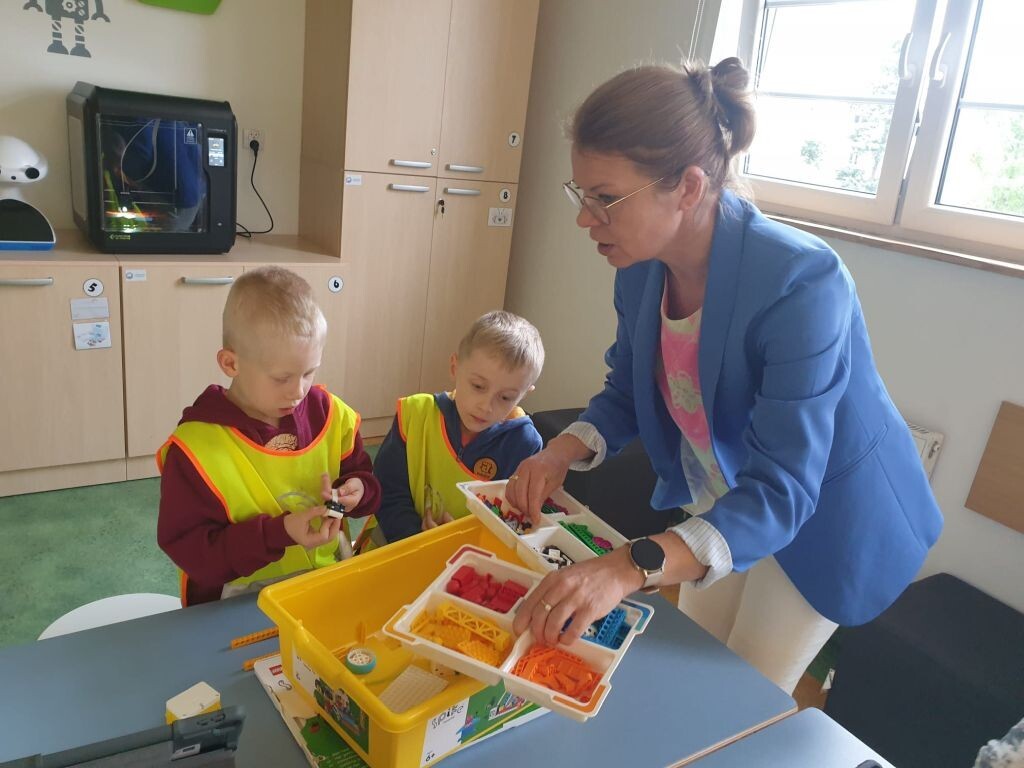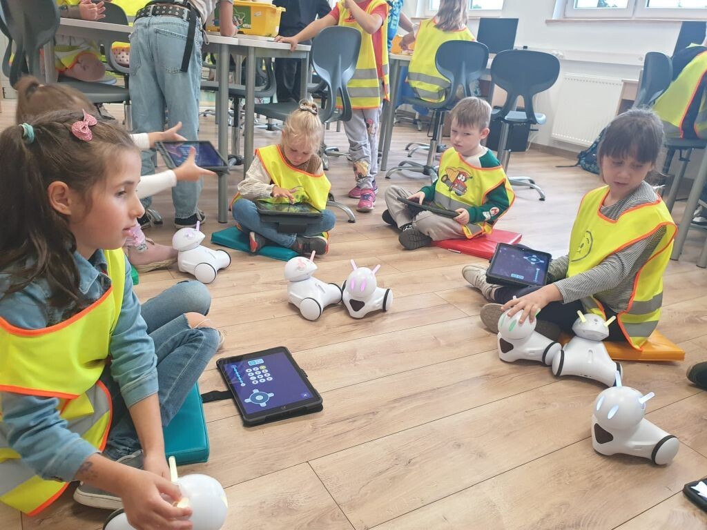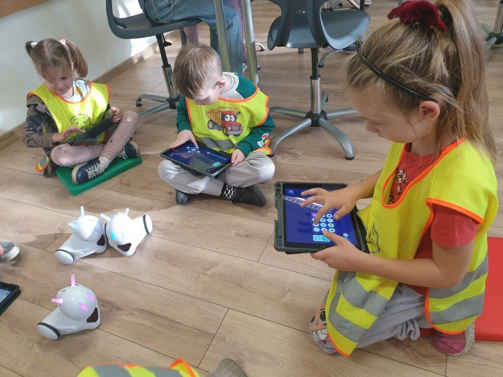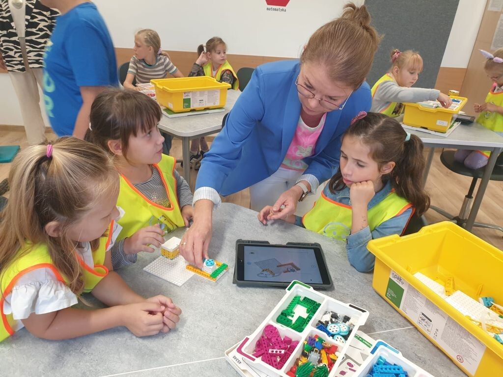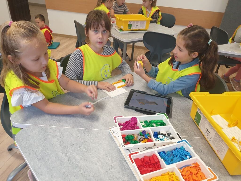 Dzisiaj odwiedziły nas przedszkolaki z Przedszkola nr 10 w Lęborku wraz ze swoją panią Wiolettą Szafrankiewicz. Przyszłe szkolniaki pod opieką pań: Agnieszki Jankowskiej i Karoliny Sopińskiej-Śpica oraz uczniów klasy VIb tworzyły konstrukcje z klocków Lego Spike, obsługiwały roboty Photon oraz powtarzały angielskie nazwy zwierząt z Emysem. Nauka i zabawa, zabawa i nauka – to był miło i pożytecznie spędzony czas!