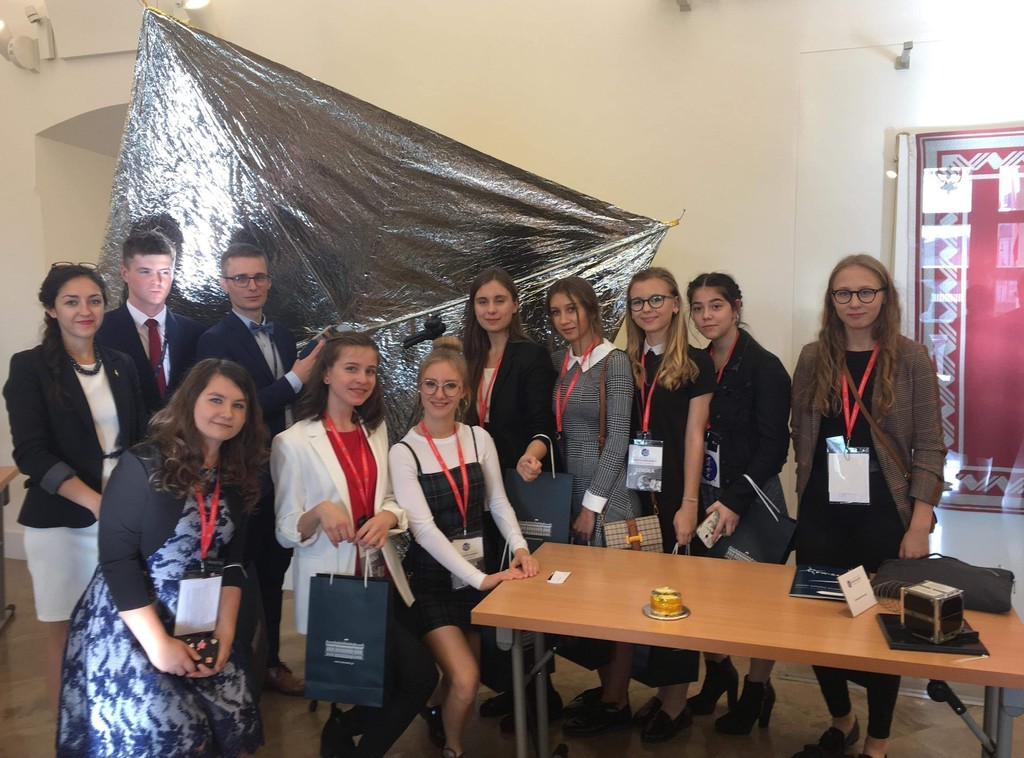 Konferencja odbyła się w Pałacu Prezydenckim, a dodatkowo towarzyszyła jej wystawa eksponatów prezentujących polską myśl techniczną i technologiczną związaną z przemysłem kosmicznym. Uczniowie naszej szkoły zostali zaproszeni do przedstawienia modelu żagla deorbitacyjnego do satelity, który stworzyli we współpracy ze studentami Politechniki Warszawskiej (zespół PW-Sat2).