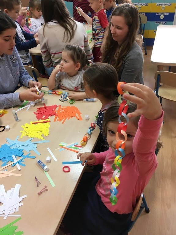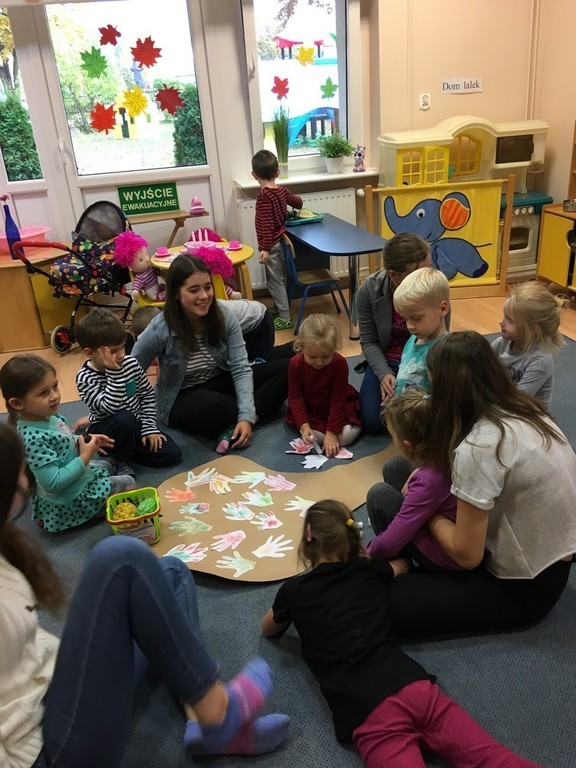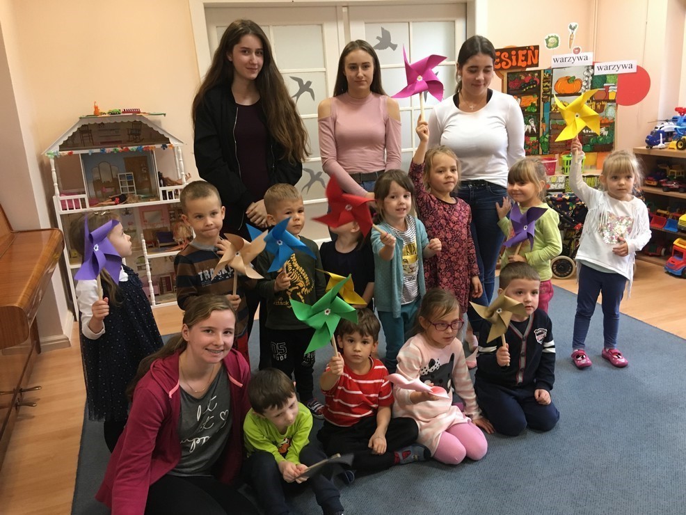 Podczas czwartkowych pobytów w przedszkolu, dziewczęta wykazują się ogromną kreatywnością: rysują, malują, tańczą, śpiewają, inicjują wspaniałe zabawy ruchowe. Średniaki – grupa 5 latków – uwielbiają wizyty naszych gimnazjalistek, podczas których panuje ogromna radość, uciecha i entuzjazm. Dziewczęta mają bardzo dobry kontakt z dziećmi, które zawsze witają je uśmiechem a żegnają ze smutkiem.