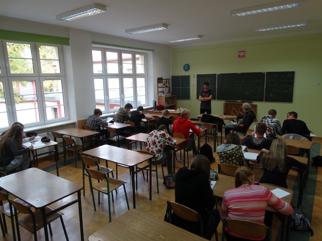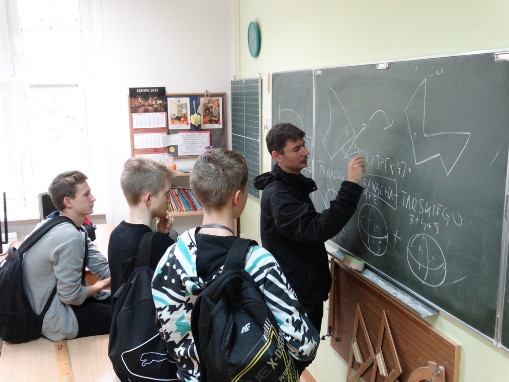 Uczniowie klas II C i III C z grupy matematyczno – fizycznej spotkali się z dr. Nikodemem Mrożkiem - adiunktem w Zakładzie Funkcji Rzeczywistych Instytutu Matematyki. Czterogodzinne zajęcia ćwiczeniowe poświęcone były liczbom niewymiernym, ich własnościom i działaniom na tych liczbach.