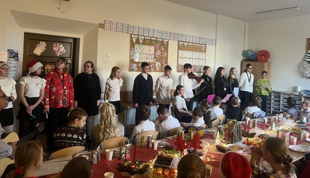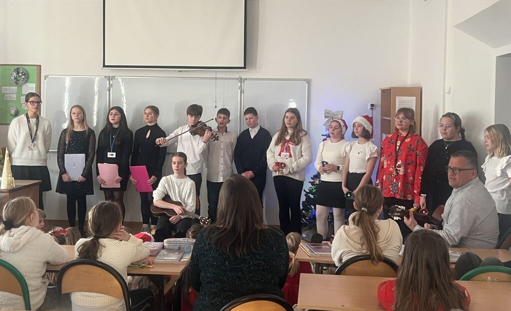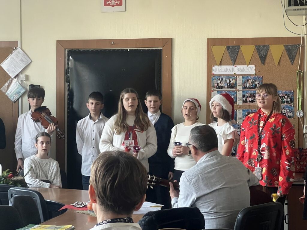 Ostatni przed feriami świątecznymi dzień w szkole to także bardzo dobry moment, by w formie wyśpiewanej kolędy złożyć sobie życzenia nie tylko na nadchodzące święta Bożego Narodzenia, ale również na Nowy Rok. Grupa uzdolnionej muzycznie młodzieży wprowadziła nas w klimat świątecznego czasu. Kolędowaliśmy w młodszych klasach i w pokoju nauczycielskim. Towarzyszyła nam chwila refleksji i zadumy, a niektórym też łezka, która zakręciła się w oku... Wesołych Świąt!