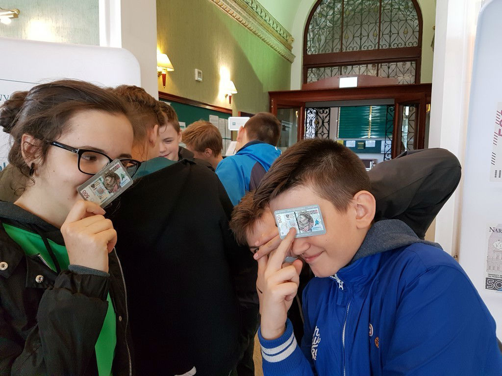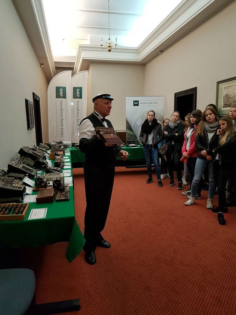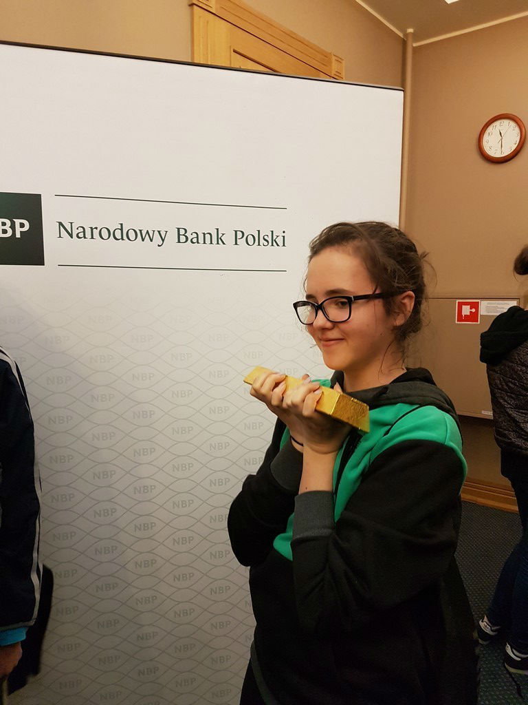 Klasy IA i IC skorzystały z "Dni Otwartych NBP" i 9 maja odwiedziły oddział Narodowego Banku Polskiego w Gdańsku. Uczniowie poznali najważniejsze zadania i funkcje banku centralnego, następnie zostali podzieleni na zespoły, które podziwiały kolekcję maszyn liczących, sprawdzały autentyczność banknotów i monet, układali krótką historię pieniądza, otwierali sejfy, przymierzali strój konwojenta, a także mieli możliwość potrzymania 12 kg sztabki złota.
