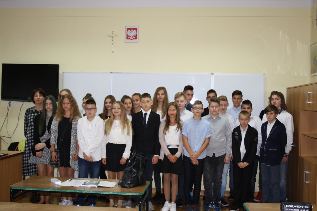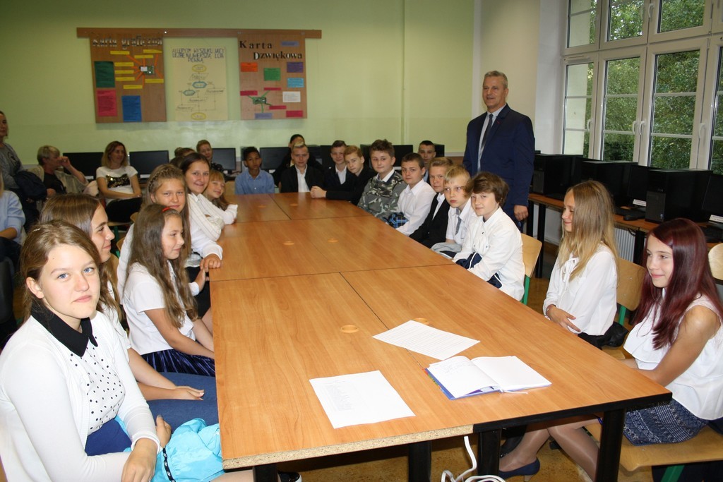 Szczególnie serdecznie zostali powitani pierwszoklasiści, którzy w murach tej szkoły spędzą najbliższe osiem lat. Nasi najmłodsi złożyli uroczyste ślubowanie i zostali pasowani na uczniów Szkoły Podstawowej nr 1 w Lęborku . Mamy nadzieję, że oni także będą godnie i z radością reprezentować naszą szkołę.