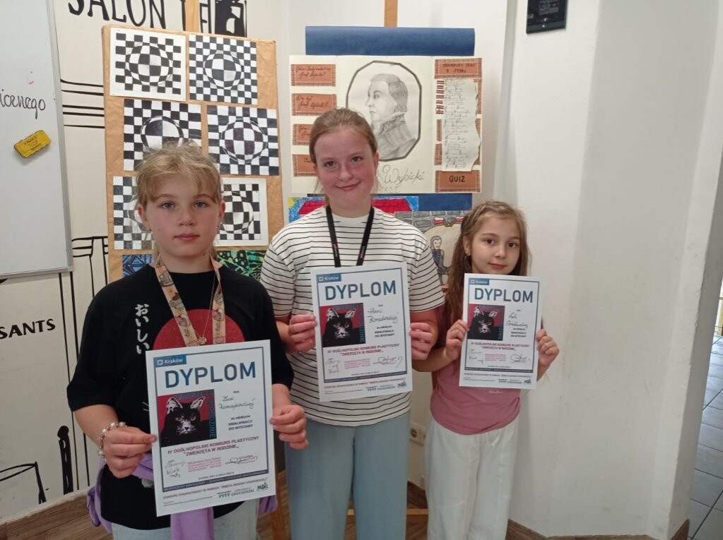 W minionym tygodniu w Sali widowiskowej Młodzieżowego Domu Kultury w Krakowie odbył się finał IV Ogólnopolskiego Konkursu Plastycznego: „Zwierzęta w Rodzinie”. Wydarzenie uświetnił koncert fortepianowy wybitnego pianisty Dominika Gilewskiego. Uroczystości towarzyszyła wystawa prac nagrodzonych, wyróżnionych oraz zakwalifikowanych do wystawy. W konkursie wyróżnienie otrzymała Maja Tutakowska z klasy VIIIa , zaś prace uczennic: Hanny Komadowskiej i Zuzanny Ramczykowskiej z IVb oraz Neli Wróblewskiej z Ia zostały zakwalifikowane do wystawy.