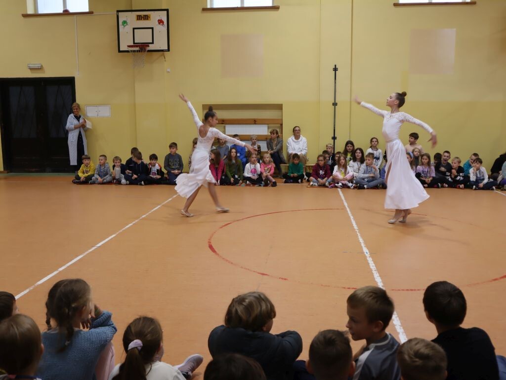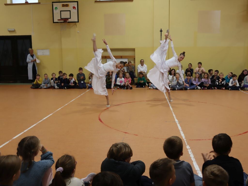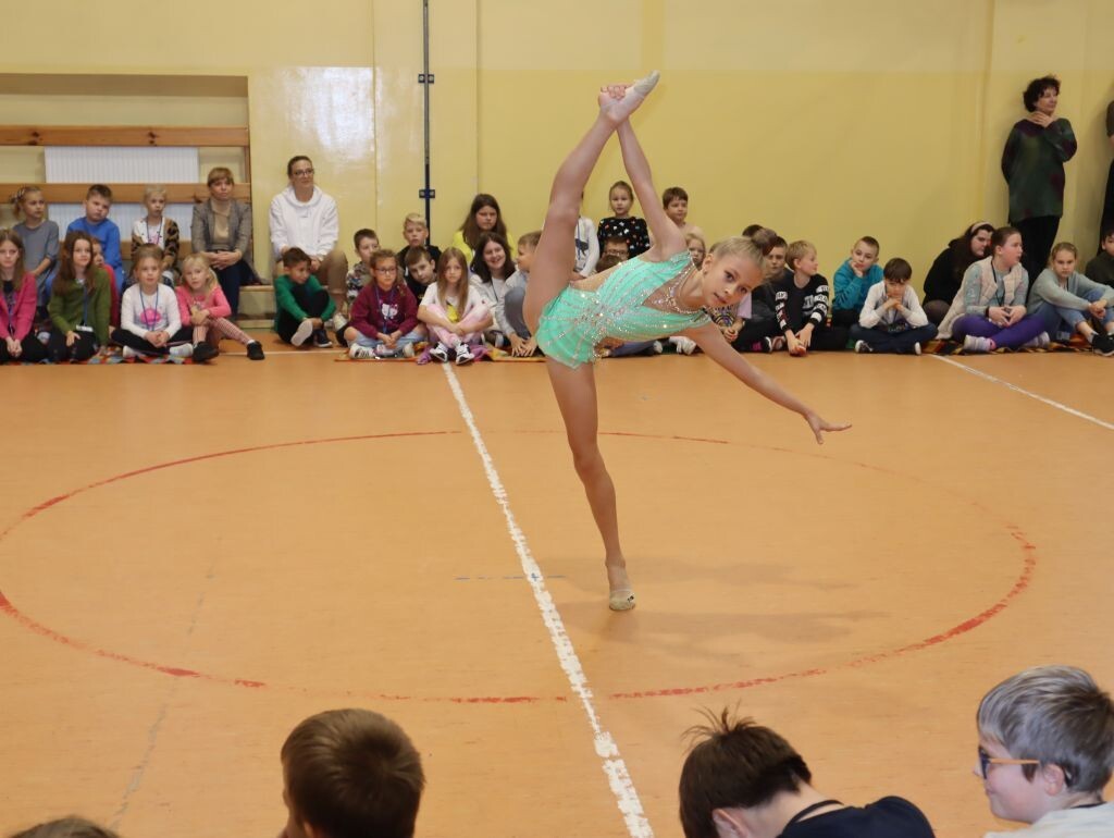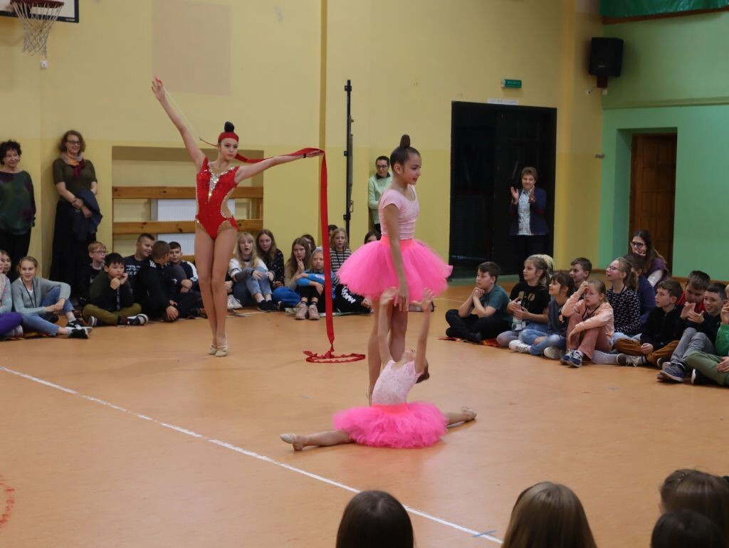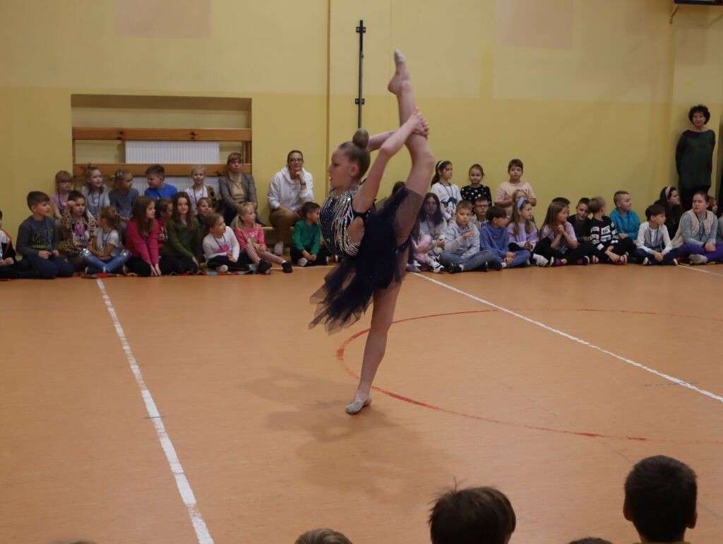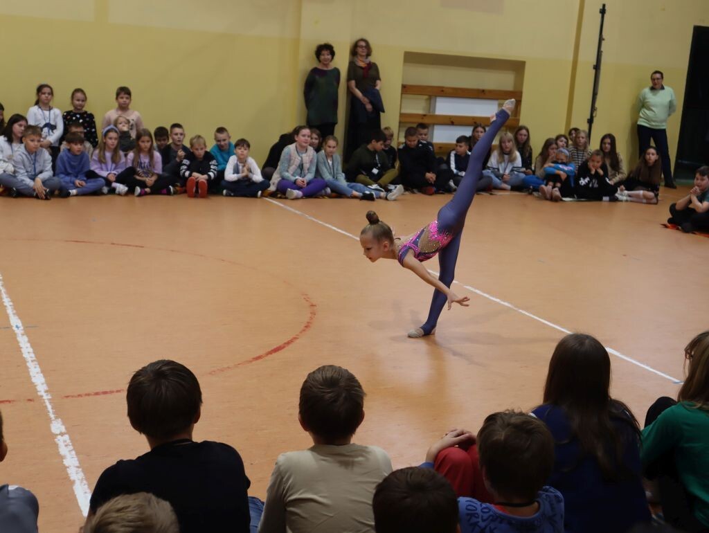 W miniony czwartek uczniom klas I-V naszej szkoły zaprezentowały się zawodniczki z Dziecięcego Klubu Sportowego Gimnastyki Artystycznej „PRIZ” z Zaporoża na Ukrainie. Pokazane przez dziewczęta umiejętności bardzo spodobały się widzom.