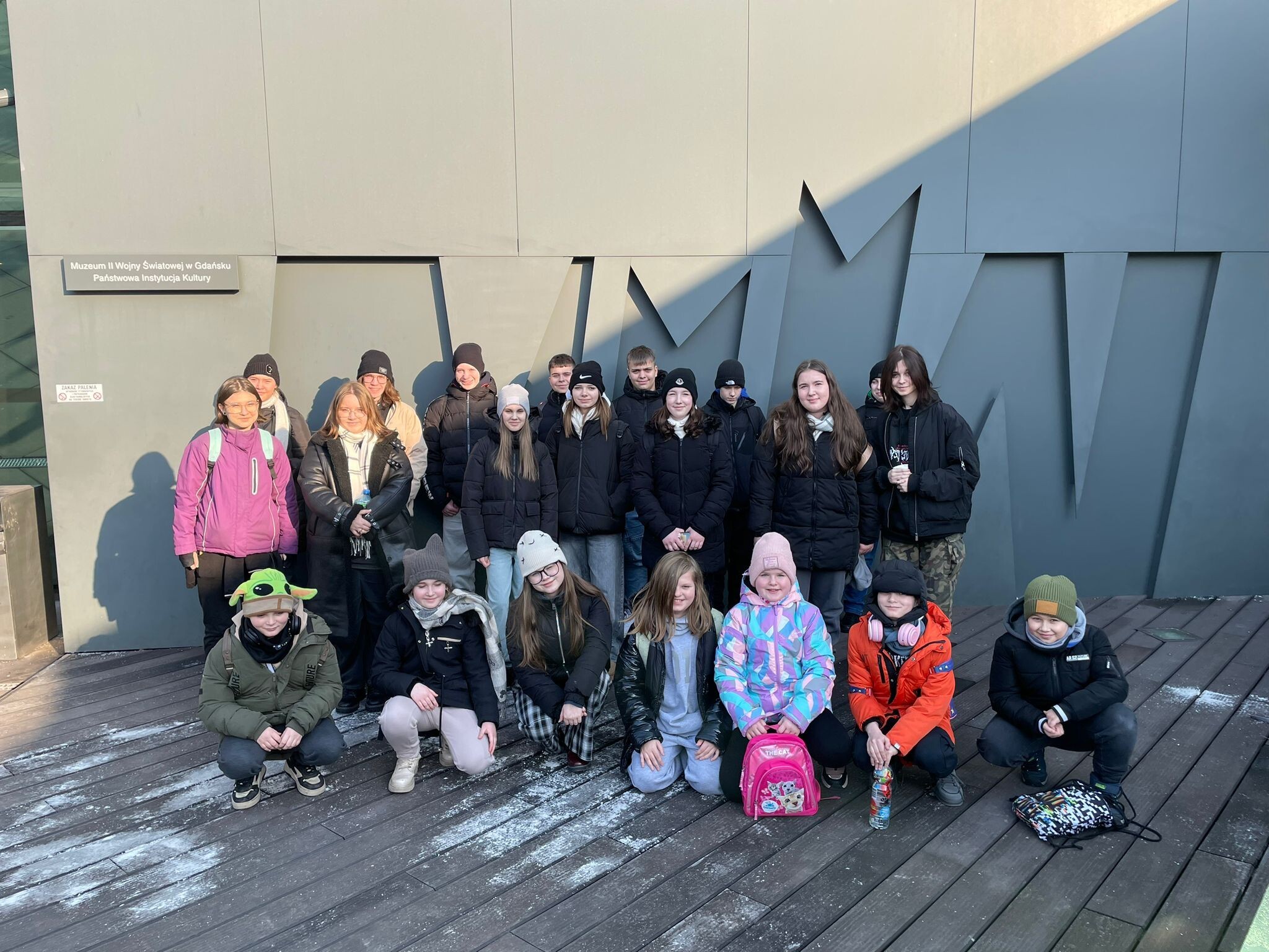 W czwartek, 20 lutego, pasjonaci historii udali się na wycieczkę do Muzeum II Wojny Światowej w Gdańsku. Jest to szczególne miejsce na historycznej mapie Trójmiasta. Wystawę główną tworzą trzy bloki narracyjne: „Droga do wojny”, „Groza wojny” oraz „Długi cień wojny”. Wystawa znajduje się 14 metrów pod ziemią. Ekspozycja przedstawia polskie doświadczenie wojny, wpisane w szerszy kontekst europejski i światowy. To opowieść o tragicznym doświadczeniu II wojny światowej, o jej genezie i skutkach, o ofiarach i sprawcach, o bohaterach i zwykłych ludziach. przypominać lekcję, której nie wolno nam zapomnieć. Młodzież uczestniczyła w mini wykładzie, który miał przybliżyć tło wydarzeń politycznych i aspekt społeczny tamtych czasów. Czas spędzony w muzeum to doskonała lekcja historii, w której można wziąć udział także podczas ferii zimowych.