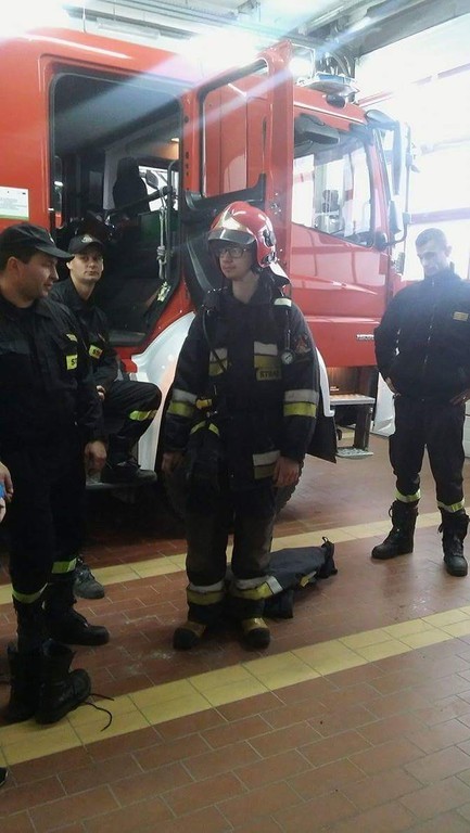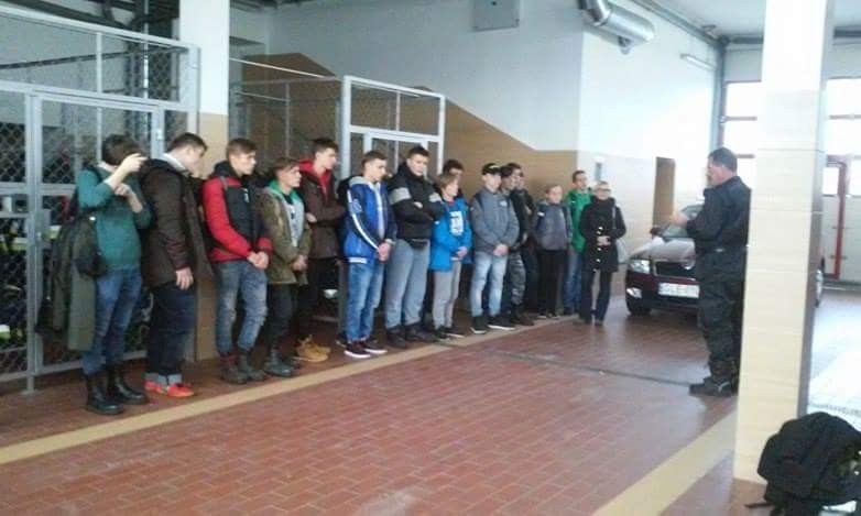 Gimnazjaliści mogli się zapoznać ze sprzętem oraz metodami używanymi w czasie gaszenia pożarów i ratowania ludzi z wypadków. Duże wrażenie wywarł na nich ogromny, nowoczesny wóz strażacki. Nie byle jaką atrakcją była możliwość wejścia do tego czerwonego pojazdu, a dla chętnych przymierzenie stroju, w którym strażacy wyjeżdżają na akcję. Wycieczka wzbudziła duże zainteresowanie, uświadomiła uczniom, jak trudna i odpowiedzialna, a zarazem ciekawa jest praca w tym zawodzie. Gimnazjaliści dowiedzieli się, że strażacy nie tylko gaszą pożary, ale mają także inne obowiązki, takie jak: pomoc i ratowanie ludzi w czasie powodzi, w wypadkach drogowych, likwidowanie gniazd os i szerszeni. Usłyszeli, jak wygląda przyjmowanie zgłoszeń oraz wyjazd na akcję ratowniczą. Przypomnieli sobie i utrwalili numery alarmowe: 998 i 112. Pod koniec spotkania dowiedzieli się, jak wygląda ścieżka do kariery strażaka oraz jakie należy spełniać kryteria, żeby podjąć pracę w tym zawodzie. Obejrzeli pouczające i skłaniające do refleksji filmy o zatruciu dwutlenkiem węgla .