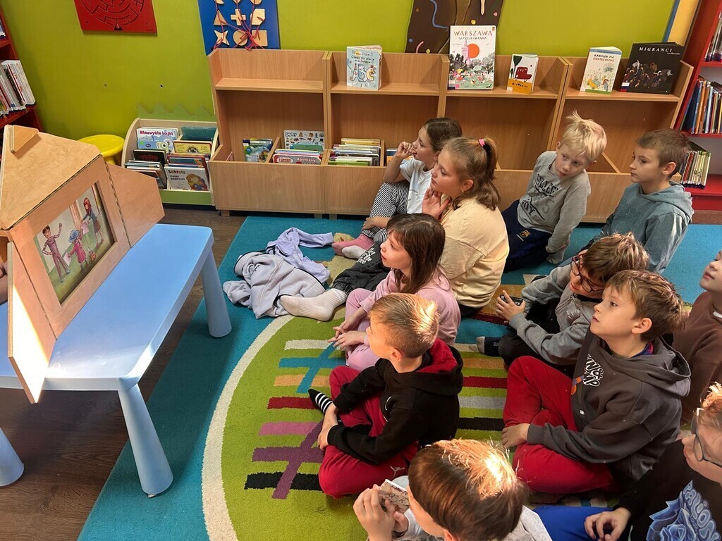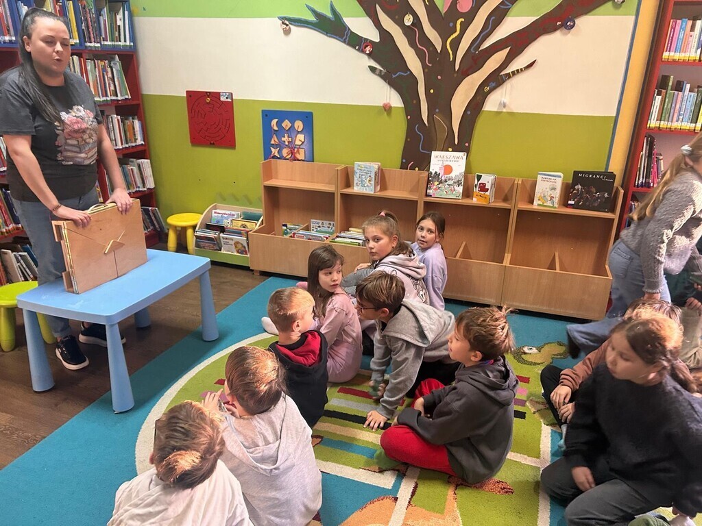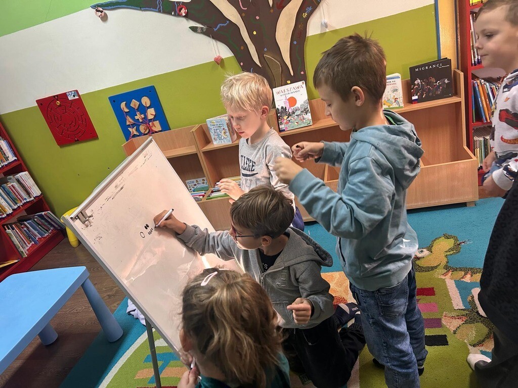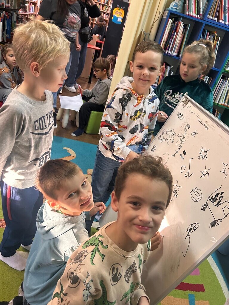 21 października klasa 2b wybrała się do Biblioteki Miejskiej na zajęcia pod tytułem „Skąd się wzięła kropka”. Na początku dzieci wysłuchały bajki o kropce, która stała się inspiracją do dalszej pracy twórczej. Następnie uczniowie wykonywali własne rysunki, rozpoczynając od jednej małej kropki – każdy obraz był inny i wyjątkowy. Po części plastycznej dzieci miały okazję poznać księgozbiór biblioteczny, dowiedzieć się, jak można korzystać z zasobów biblioteki oraz w jaki sposób wypożycza się książki. Uczniowie spędzili także czas na samodzielnym czytaniu wybranych przez siebie pozycji, a niektórzy wypożyczyli książki do domu. Zajęcia były bardzo ciekawe i rozwijały kreatywność dzieci. Uczniowie wrócili z uśmiechem i motywacją do czytania.