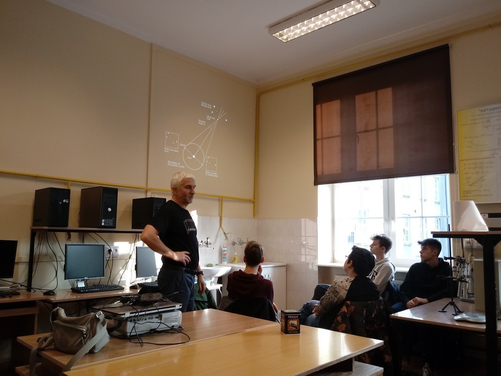 Wykład poświęcony był rozmiarom wszechświata, sposobom mierzenia odległości międzygwiezdnych i międzygalaktycznych, stosowanym w tych pomiarach jednostkom miar, wielkościom planet i gwiazd oraz ich najbliższej przyszłości. Uczniowie dowiedzieli się z gwiazdy o jakiej masie powstanie czerwony karzeł, biały karzeł, jaka musi być masa gwiazdy, aby po jej śmierci powstała czarna dziura, co to jest gwiazda neutronowa i jaka przyszłość czeka Układ Słoneczny.