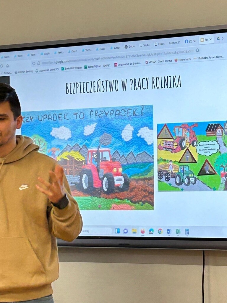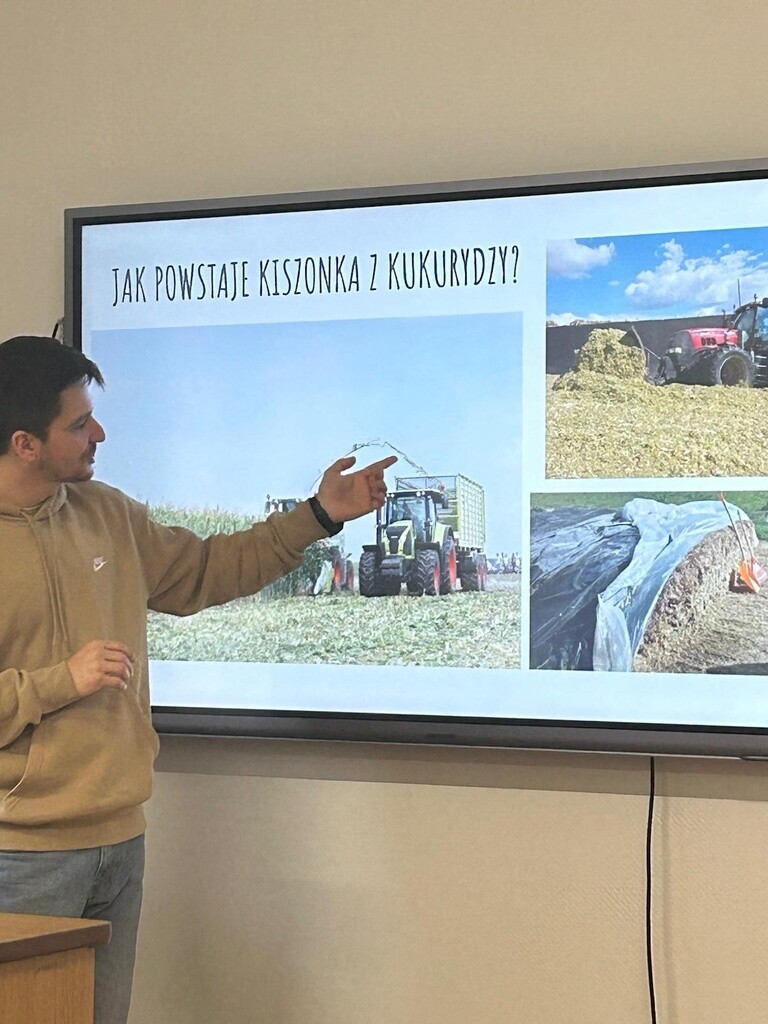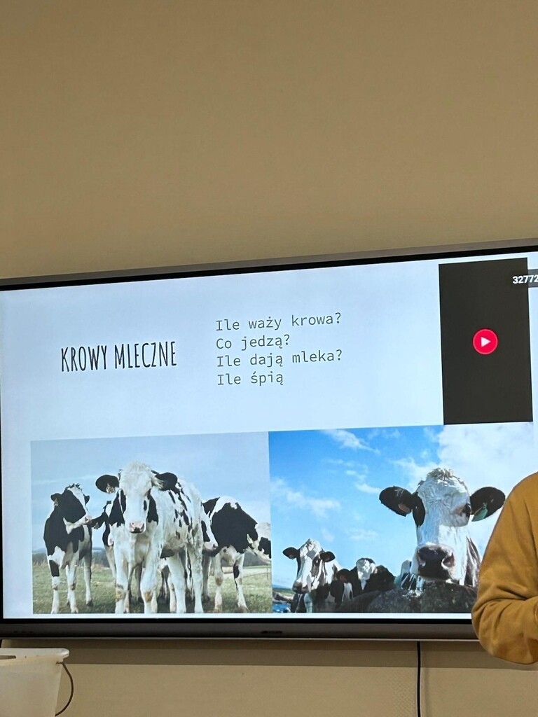 Jako młody rolnik pan Tomek stawia na nowoczesne rozwiązania. W krótkich filmikach ze swojego gospodarstwa zaprezentował dzieciom skomputeryzowane maszyny do udoju krów, nowoczesne traktory, siewniki oraz maszyny do zbioru, m.in. kukurydzy, a nawet robota sprzątającego w oborze. Uczniowie z dużym zaciekawieniem poznali także sposób dokarmiania cieląt i dowiedzieli się, że każde z nich ma własny domek. Usłyszeli wiele ciekawostek na temat życia i zwyczajów krów.