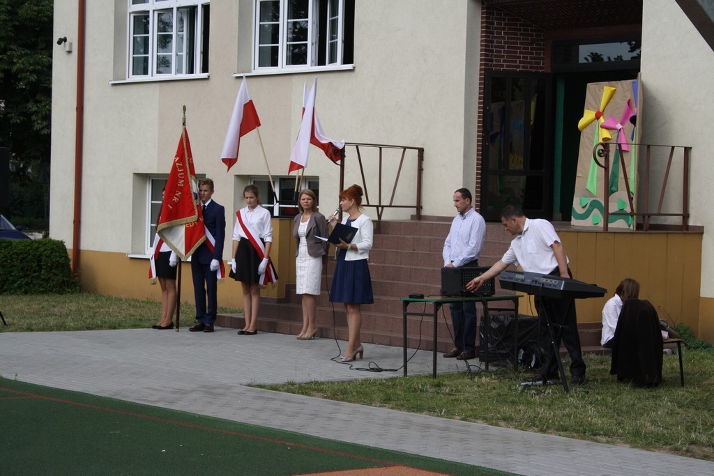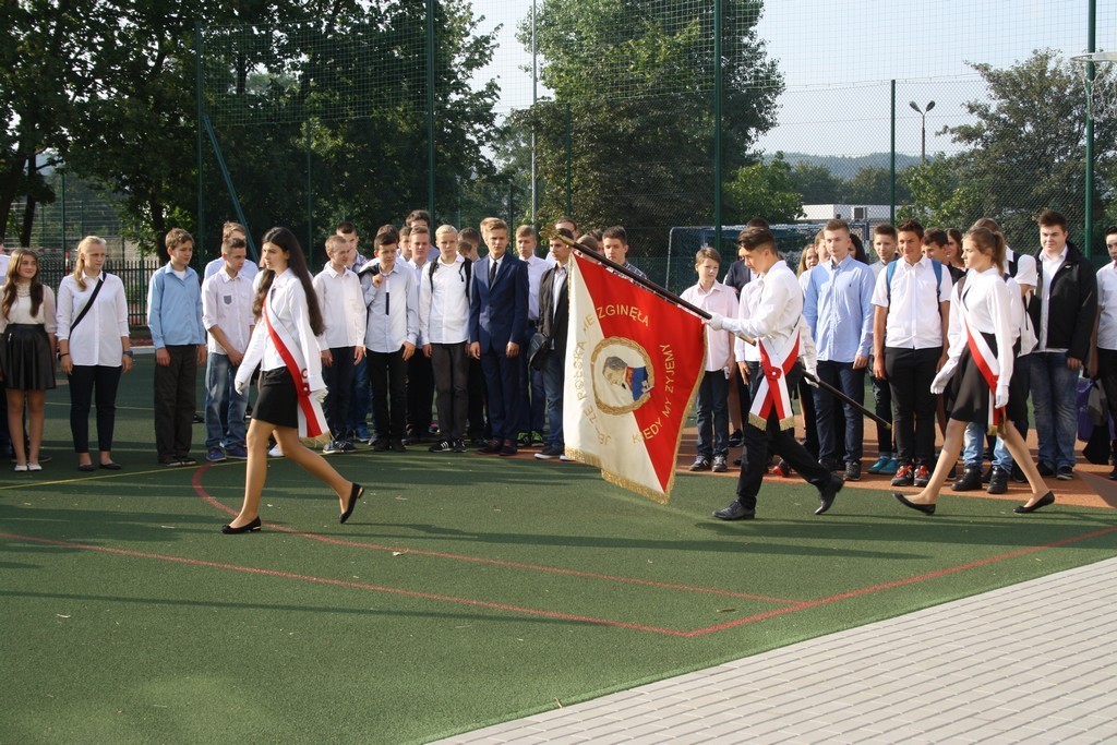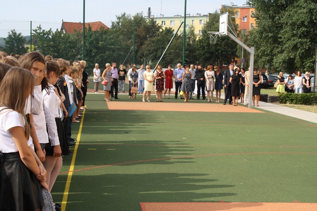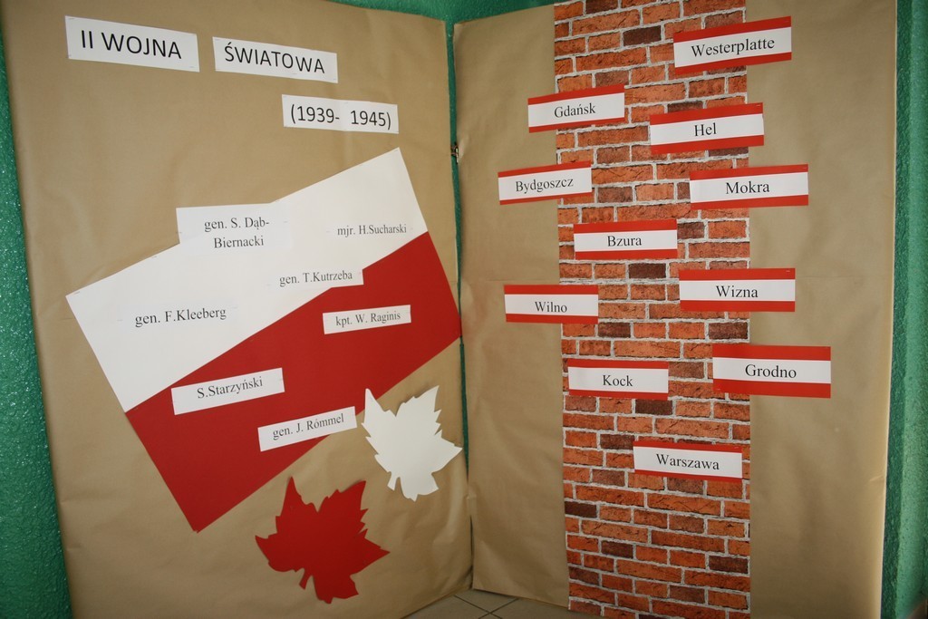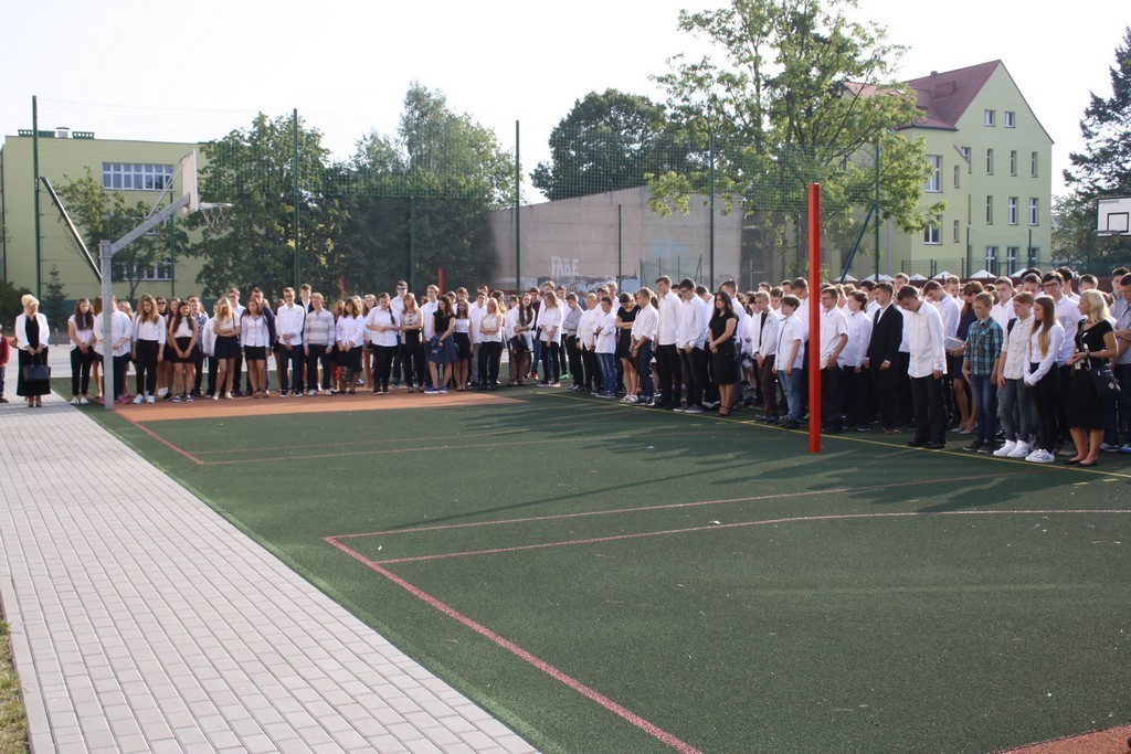 Jednak pierwszy września to nie tylko dzień rozpoczynający szkolne zmagania. To również rocznica wybuchu drugiej wojny światowej. Nawiązując do tragicznych wydarzeń tamtego okresu, uczniowie oraz nauczyciele uczcili minutą ciszy pamięć poległych w służbie dla Ojczyzny. Nauczyciele historii przygotowali również tablicę okolicznościową nawiązującą do tematyki związanej w wojną.