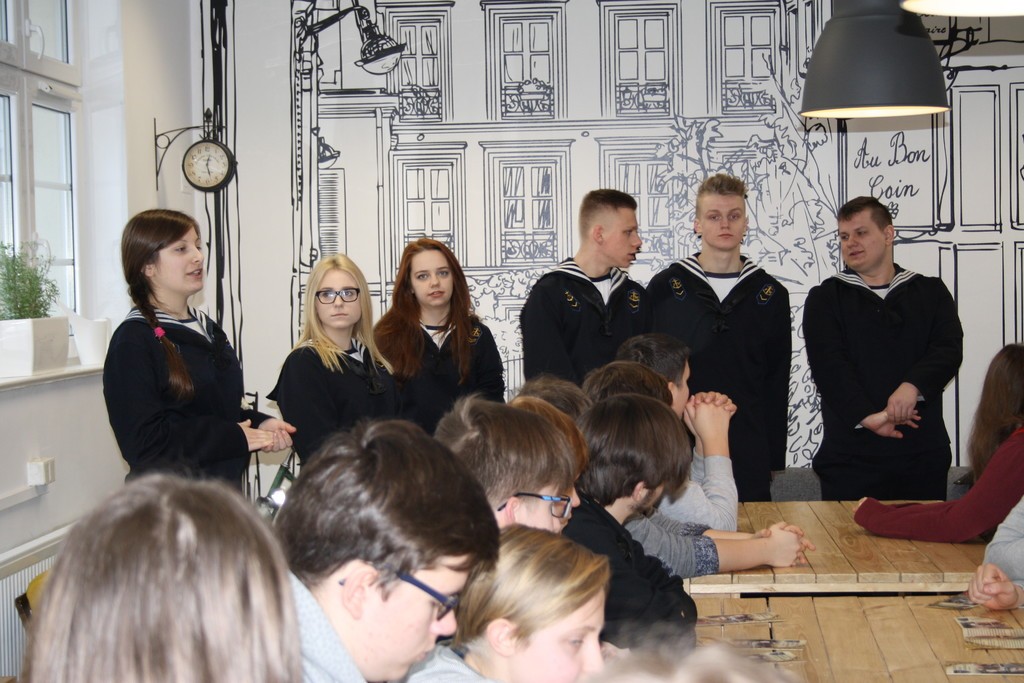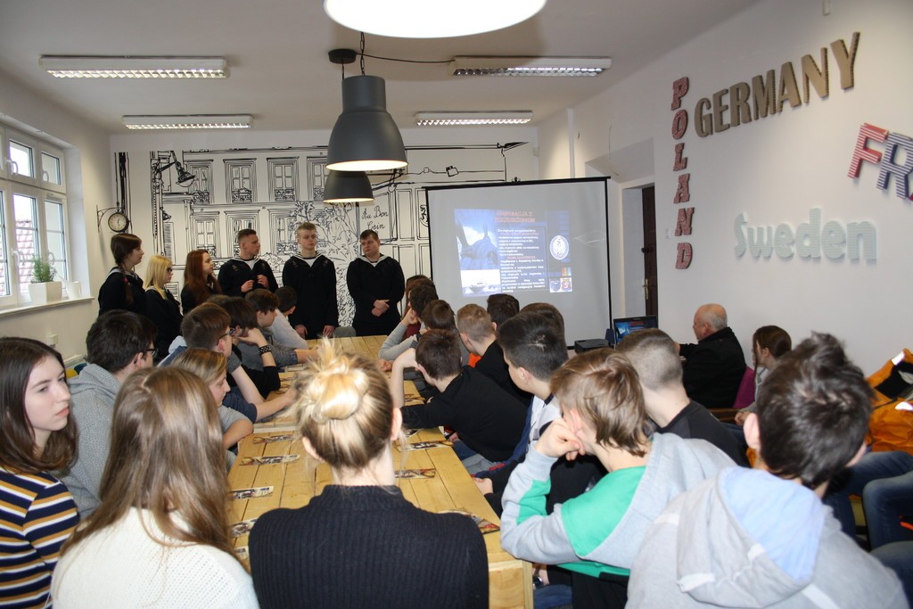 Uczniowie oraz nauczyciele tejże szkoły zaprezentowali kierunki, w których młodzież może nabywać umiejętności technika nawigatora morskiego, technika mechanika okrętowego, technika logistyka czy technika hotelarstwa. Gimnazjaliści obejrzeli też prezentację multimedialną.