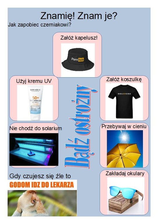 Następnie uczniowie zaprojektowali i wykonali na komputerze własne plakaty, które ostrzegają ludzi przed czerniakiem złośliwym.