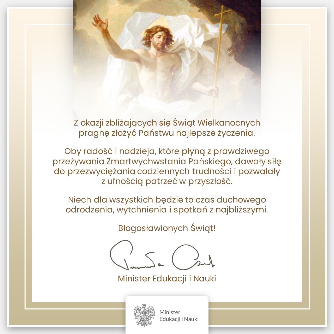 Zdrowych, pogodnych Świąt Wielkanocnych, pełnych wiary, nadziei i miłości. Radosnego, wiosennego nastroju, serdecznych spotkań w gronie rodziny i wśród przyjaciół oraz wesołego Alleluja