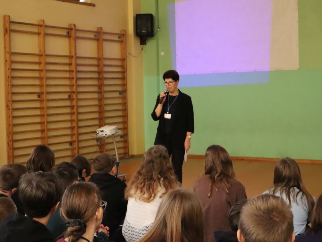 W ramach Tygodnia Przedsiębiorczości ósmoklasiści uczestniczyli w spotkaniu z panią Izabelą Cieślińską – Naczelnikiem Urzędu Skarbowego w Lęborku. Celem spotkania było poznanie zakresu prac urzędu, kompetencji pracowników. Pani Izabela Cieślińska opowiedziała uczniom, czym zajmuje się urząd, z jakich jednostek się składa i jak wygląda organizacja każdej z komórek. Uczniowie dowiedzieli się również jakie konkretne kwalifikacje oraz predyspozycje osobiste potrzebne są do pracy w tej instytucji.