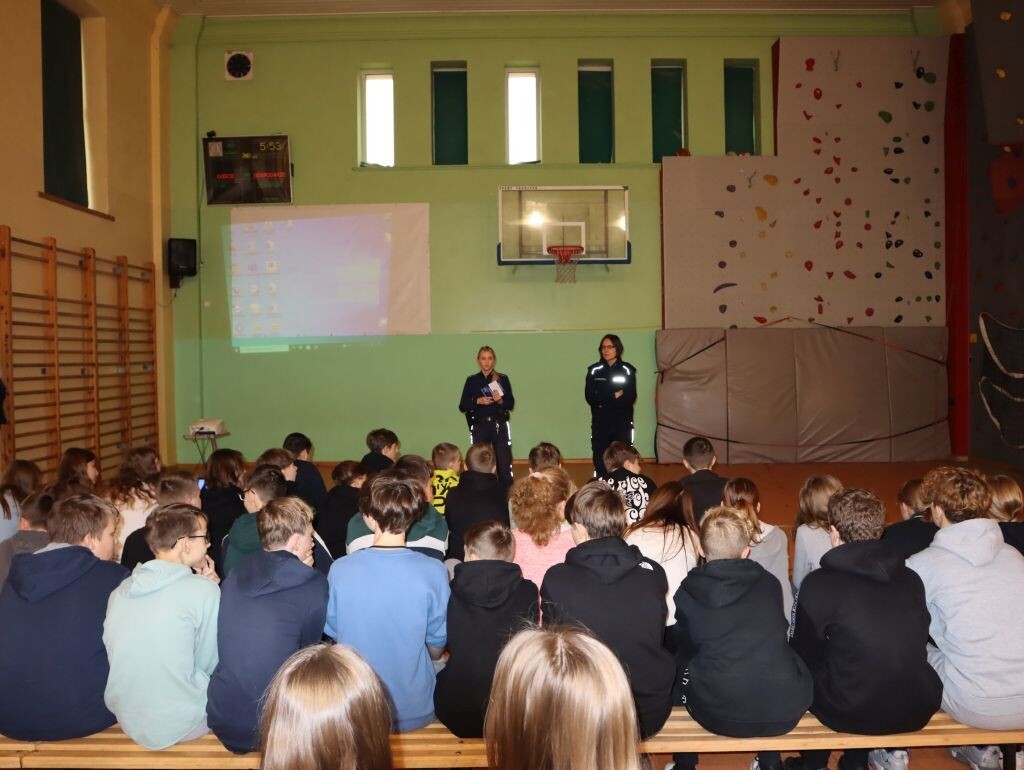 W czwartek ,17 listopada, na sali gimnastycznej w Szkole Podstawowej nr 1 odbyło się kolejne spotkanie prozawodowe w ramach realizowanego projektu Otwarta firma. Uczestnikami spotkania byli uczniowie klas ósmych. Tym razem o swojej pracy opowiadały dwie funkcjonariuszki Komendy Miejskiej Policji w Lęborku. Praca wykonywana na co dzień nie należy do łatwych. Wymaga ona kontaktu z obywatelem każdego dnia. Często ,podejmując interwencję policja nie wie, z jakim przypadkiem będzie miała do czynienia. Nasi goście przedstawili warunki, które trzeba spełniać, by dostać się do zawodu. Zwrócili uwagę, jak ważna jest sprawność fizyczna, niekaralność oraz testy psychologiczne. Prelegentki zwróciły także uwagę, że praca w policji może dawać wiele satysfakcji, gdy podejmowane akcje kończą się sukcesem.